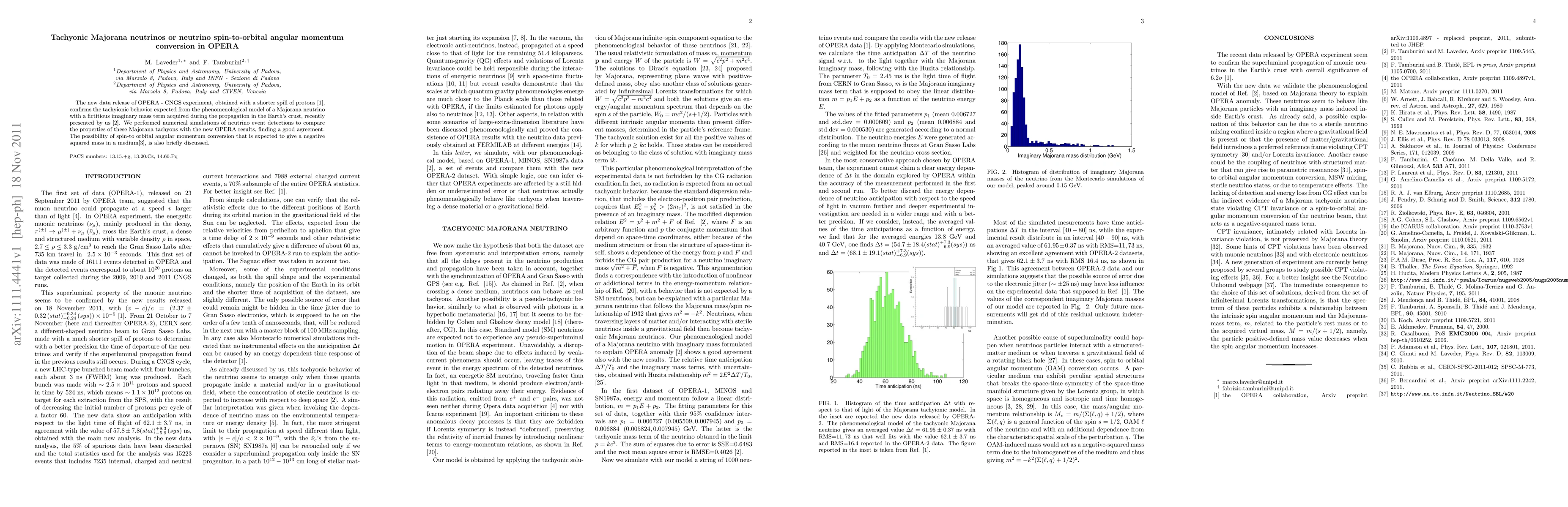 The new data release of OPERA - CNGS experiment, obtained with a shorter spill of protons, confirms the tachyionic behavior expected from the phenomenological model of a Majorana neutrino with a fictitious imaginary mass term acquired during the propagation in the Earth's crust, recently presented by us. We performed numerical simulations of neutrino event detections to compare the properties of these Majorana tachyons with the new OPERA results, finding a good agreement. The possibility of spin-to orbital angular momentum conversion that is expected to give a negative squared mass in a medium, is also briefly discussed.