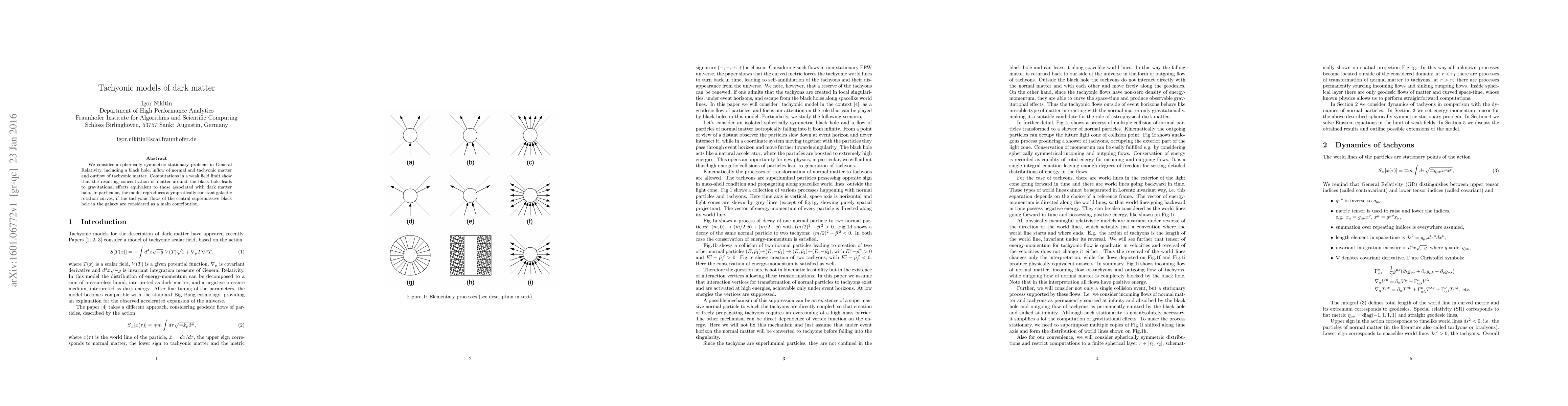 This paper explores a General Relativity model incorporating tachyonic matter around a black hole, demonstrating that tachyonic inflows and outflows can generate gravitational effects akin to dark matter, explaining galactic rotation curves without dark matter.
