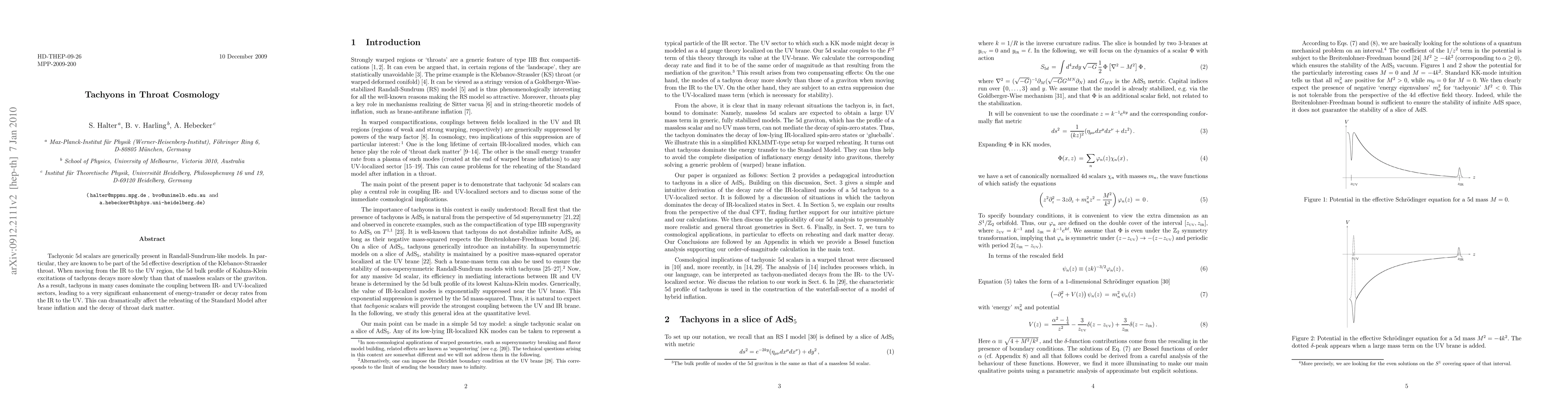 This paper explores the presence of tachyonic 5d scalars in Randall-Sundrum-like models, particularly in the Klebanov-Strassler throat, where they dominate the coupling between infrared and ultraviolet regions, significantly enhancing energy transfer and decay rates, impacting processes like post-inflation reheating and throat dark matter decay.