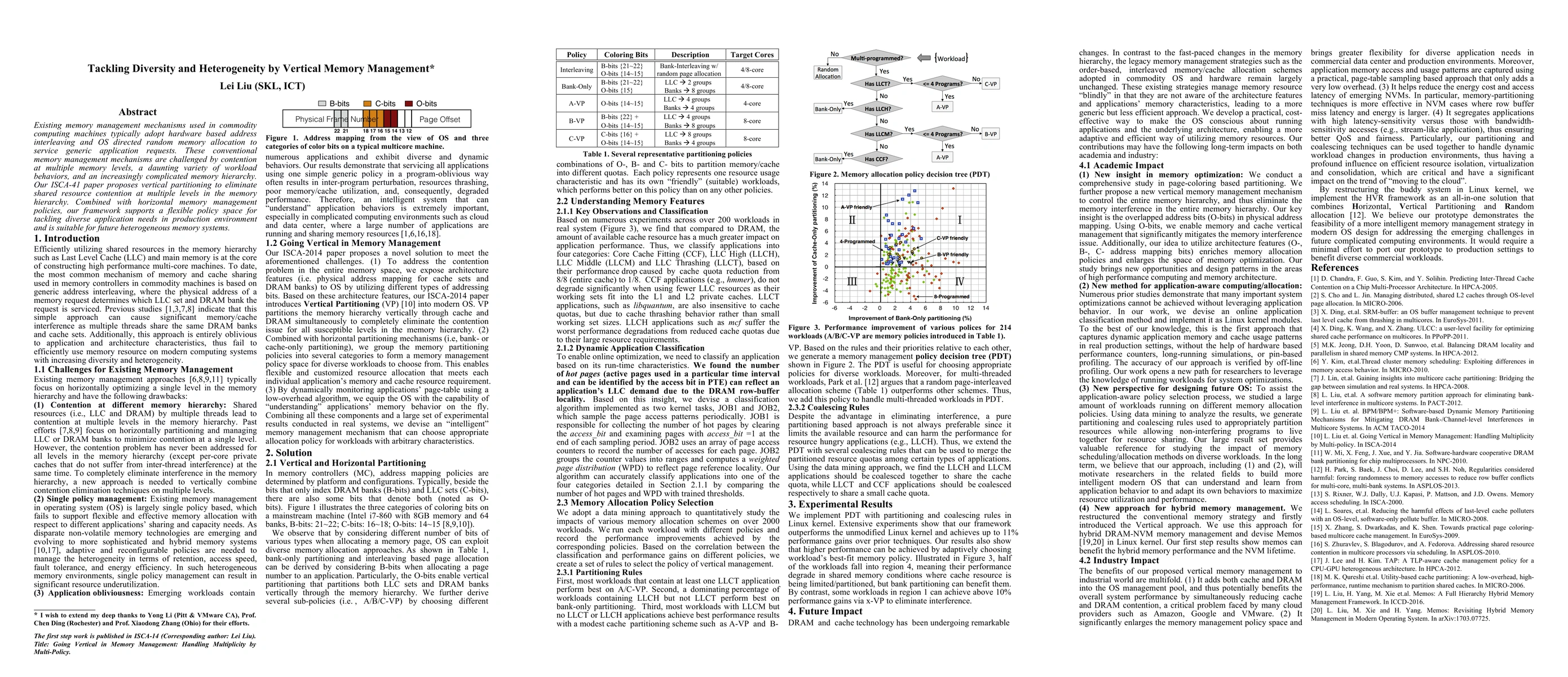 Existing memory management mechanisms used in commodity computing machines typically adopt hardware based address interleaving and OS directed random memory allocation to service generic application requests. These conventional memory management mechanisms are challenged by contention at multiple memory levels, a daunting variety of workload behaviors, and an increasingly complicated memory hierarchy. Our ISCA-41 paper proposes vertical partitioning to eliminate shared resource contention at multiple levels in the memory hierarchy. Combined with horizontal memory management policies, our framework supports a flexible policy space for tackling diverse application needs in production environment and is suitable for future heterogeneous memory systems.