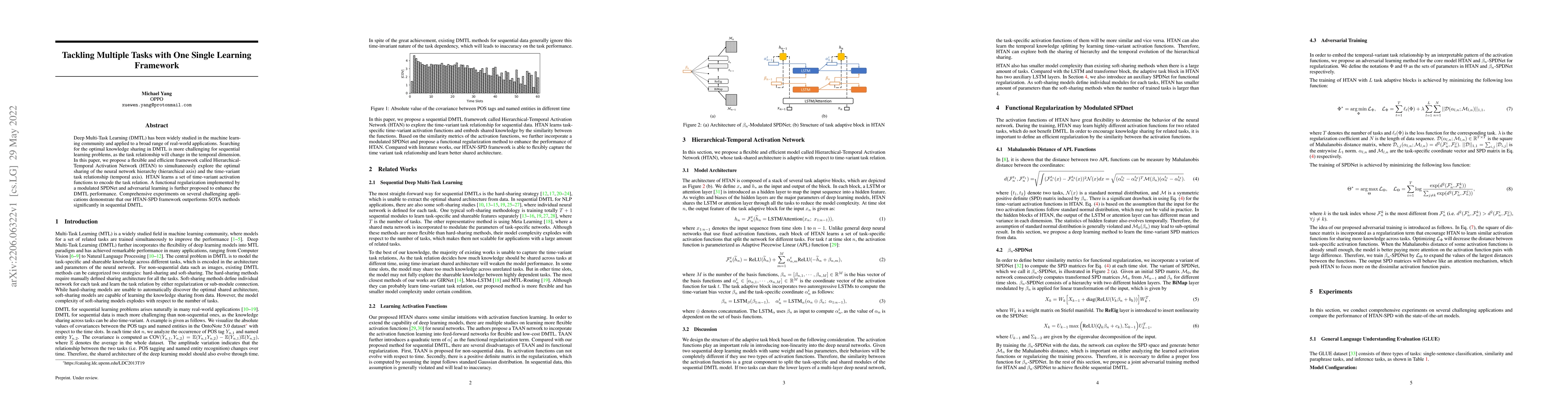 Deep Multi-Task Learning (DMTL) has been widely studied in the machine learning community and applied to a broad range of real-world applications. Searching for the optimal knowledge sharing in DMTL is more challenging for sequential learning problems, as the task relationship will change in the temporal dimension. In this paper, we propose a flexible and efficient framework called HierarchicalTemporal Activation Network (HTAN) to simultaneously explore the optimal sharing of the neural network hierarchy (hierarchical axis) and the time-variant task relationship (temporal axis). HTAN learns a set of time-variant activation functions to encode the task relation. A functional regularization implemented by a modulated SPDNet and adversarial learning is further proposed to enhance the DMTL performance. Comprehensive experiments on several challenging applications demonstrate that our HTAN-SPD framework outperforms SOTA methods significantly in sequential DMTL.