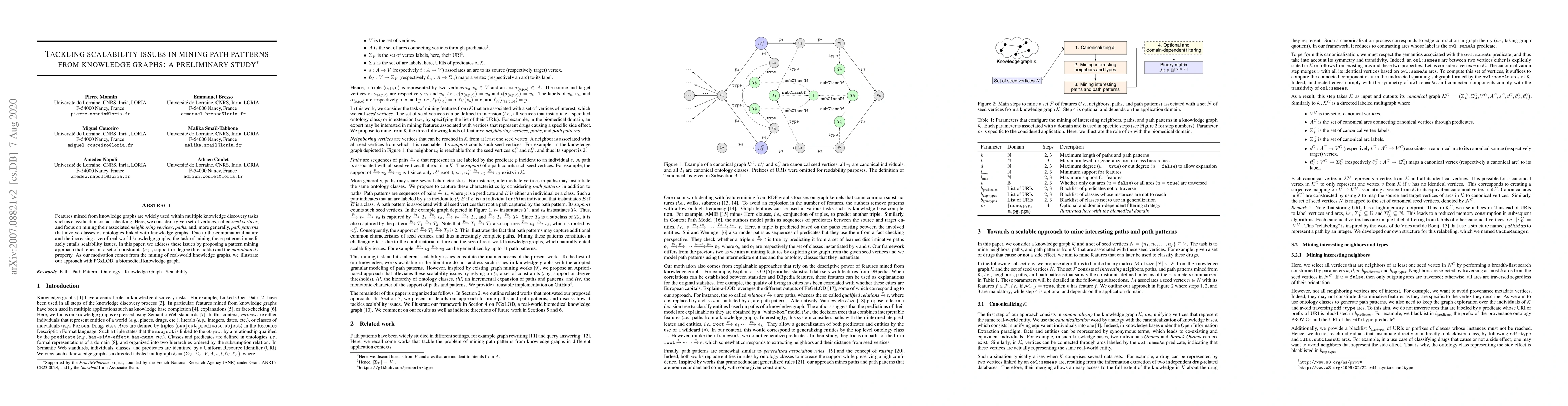 This paper proposes a scalable approach to mine path patterns from knowledge graphs using constraints and monotonicity properties to address the combinatorial complexity inherent in large datasets. The method is demonstrated using PGxLOD, a biomedical knowledge graph.