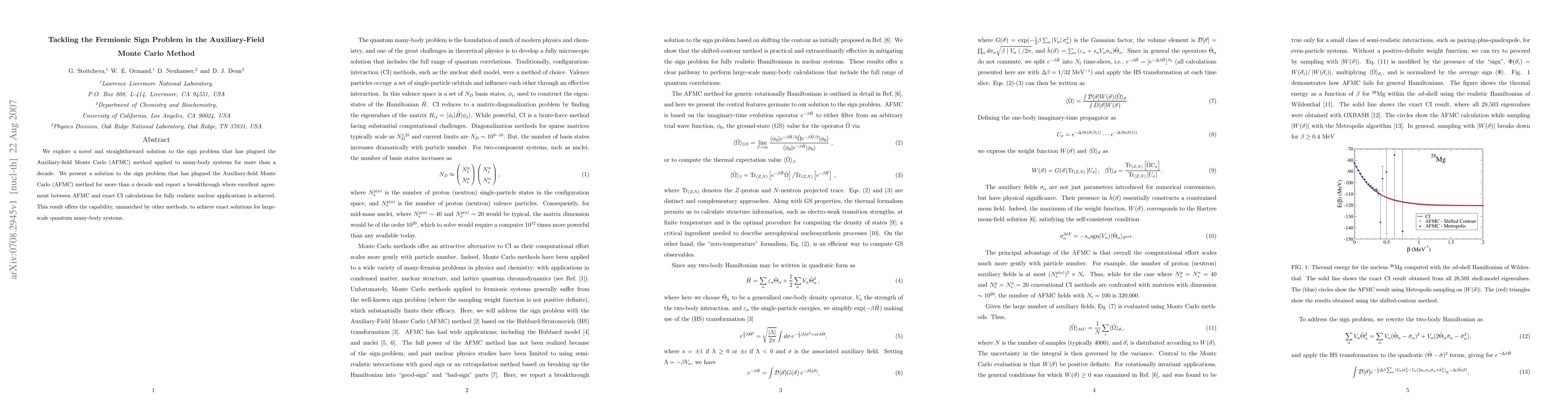 This research introduces a novel approach to resolve the long-standing fermionic sign problem in the Auxiliary-field Monte Carlo (AFMC) method, achieving excellent agreement with exact calculations for nuclear applications and enabling exact solutions for large-scale quantum many-body systems.