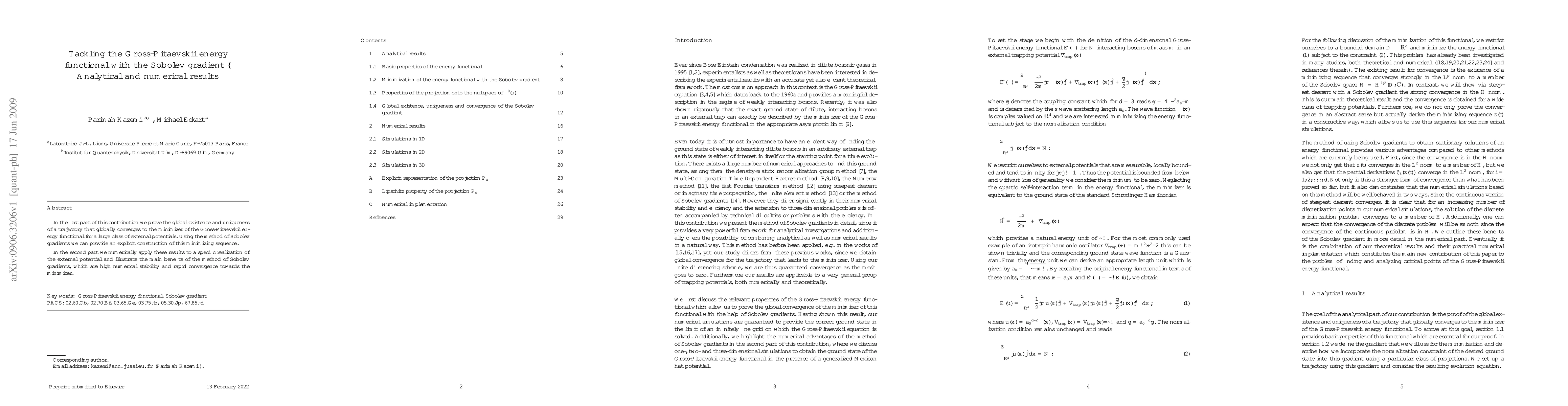 Researchers prove global convergence of a minimizing sequence for the Gross-Pitaevskii energy functional using the Sobolev gradient method, achieving high numerical stability and rapid convergence.