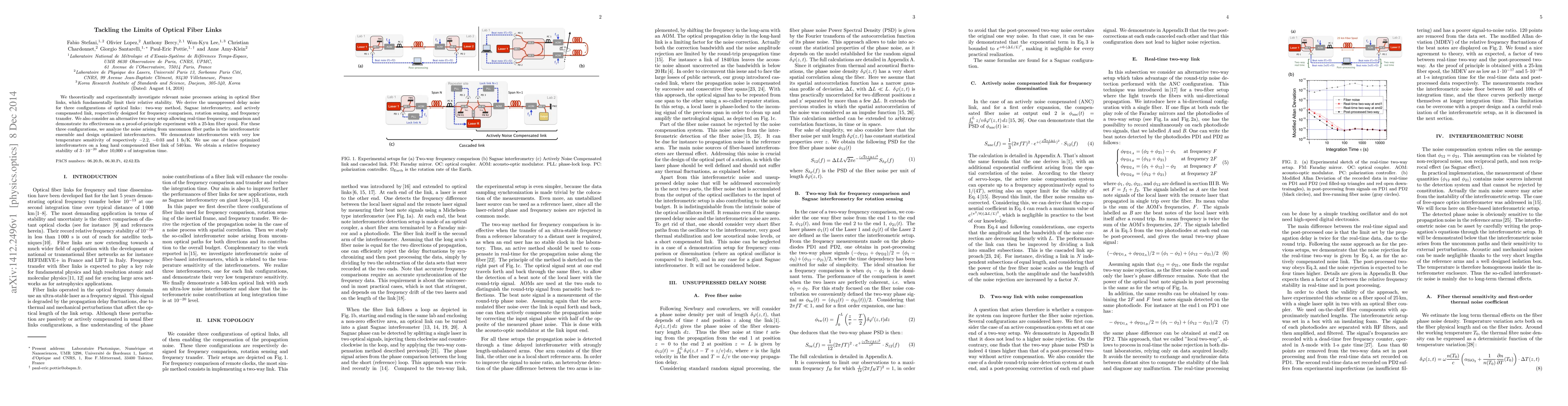 This paper investigates and experimentally validates noise processes limiting optical fiber link stability, deriving delay noise for three configurations: two-way method, Sagnac interferometry, and actively compensated link. Optimized interferometers achieve low temperature sensitivity and demonstrate a relative frequency stability of 3E-20 over a 540km link.