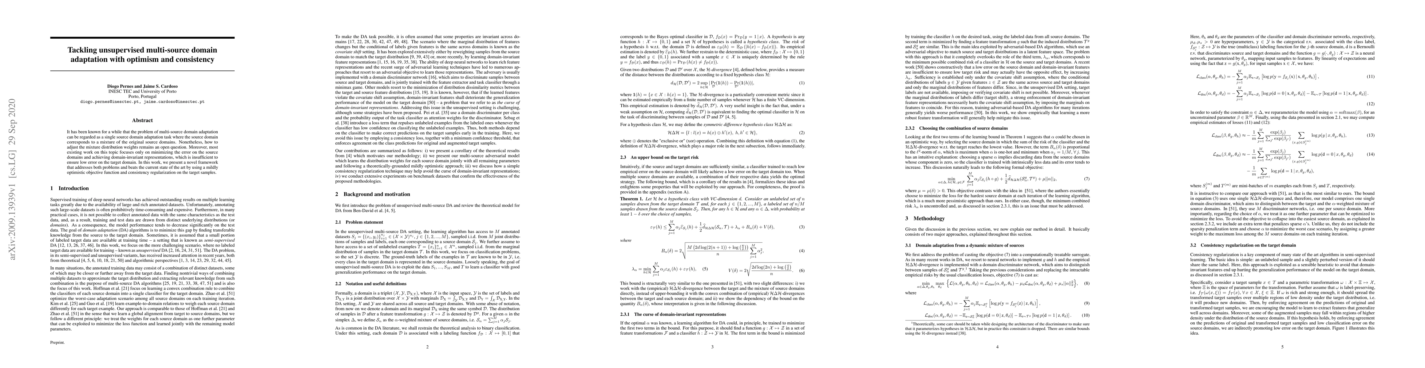 It has been known for a while that the problem of multi-source domain adaptation can be regarded as a single source domain adaptation task where the source domain corresponds to a mixture of the original source domains. Nonetheless, how to adjust the mixture distribution weights remains an open question. Moreover, most existing work on this topic focuses only on minimizing the error on the source domains and achieving domain-invariant representations, which is insufficient to ensure low error on the target domain. In this work, we present a novel framework that addresses both problems and beats the current state of the art by using a mildly optimistic objective function and consistency regularization on the target samples.