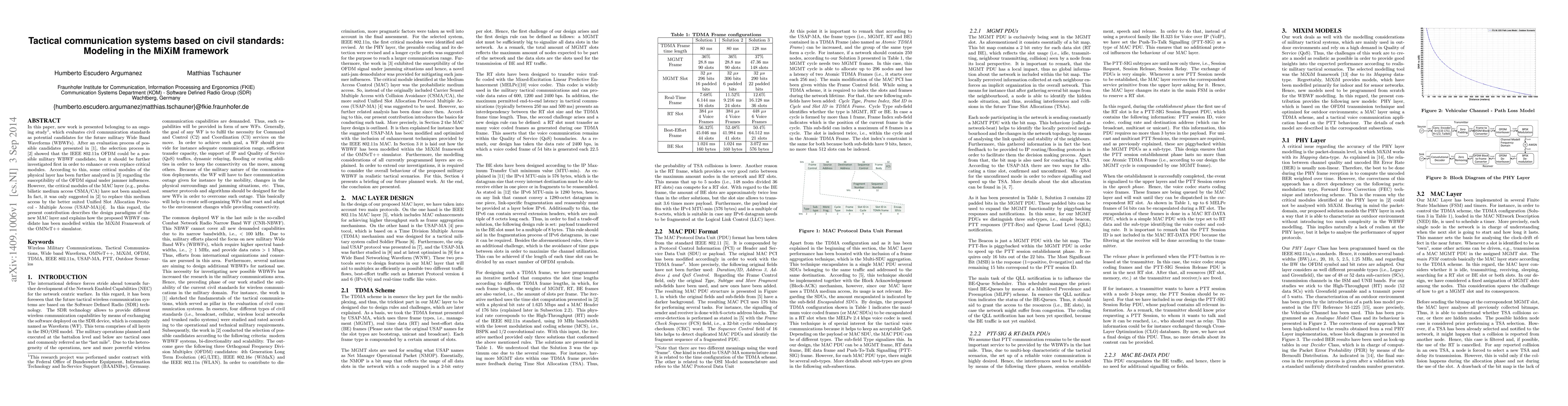 In this paper, new work is presented belonging to an ongoing study, which evaluates civil communication standards as potential candidates for the future military Wide Band Waveforms (WBWFs). After an evaluation process of possible candidates presented in [2], the selection process in [1] showed that the IEEE 802.11n OFDM could be a possible military WBWF candidate, but it should be further investigated first in order to enhance or even replace critical modules. According to this, some critical modules of the physical layer has been further analyzed in [3] regarding the susceptibility of the OFDM signal under jammer influences. However, the critical modules of the MAC layer (e.g., probabilistic medium access CSMA/CA) have not been analysed. In fact, it was only suggested in [2] to replace this medium access by the better suited Unified Slot Allocation Protocol - Multiple Access (USAP-MA) [4]. In this regard, the present contribution describes the design paradigms of the new MAC layer and explains how the proposed WBWF candidate has been modelled within the MiXiM Framework of the OMNeT++ simulator.
