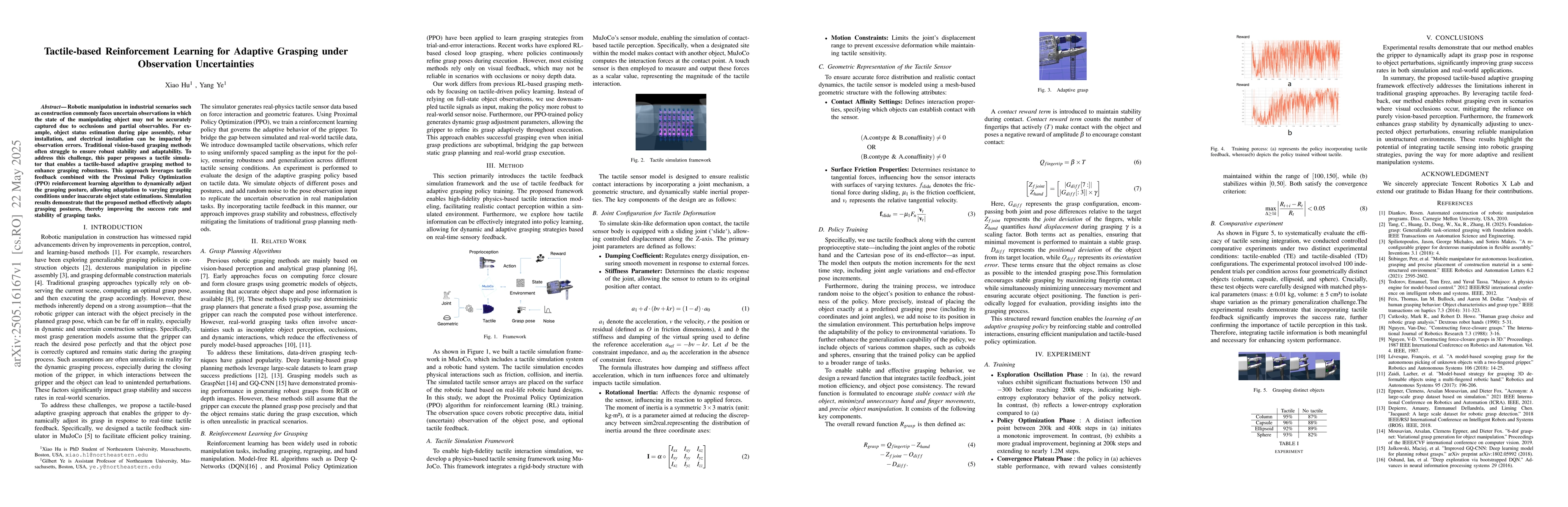 Researchers propose a new method that uses tactile feedback and reinforcement learning to improve robotic grasping accuracy in uncertain environments. The approach adapts to changing conditions and improves the success rate of grasping tasks.