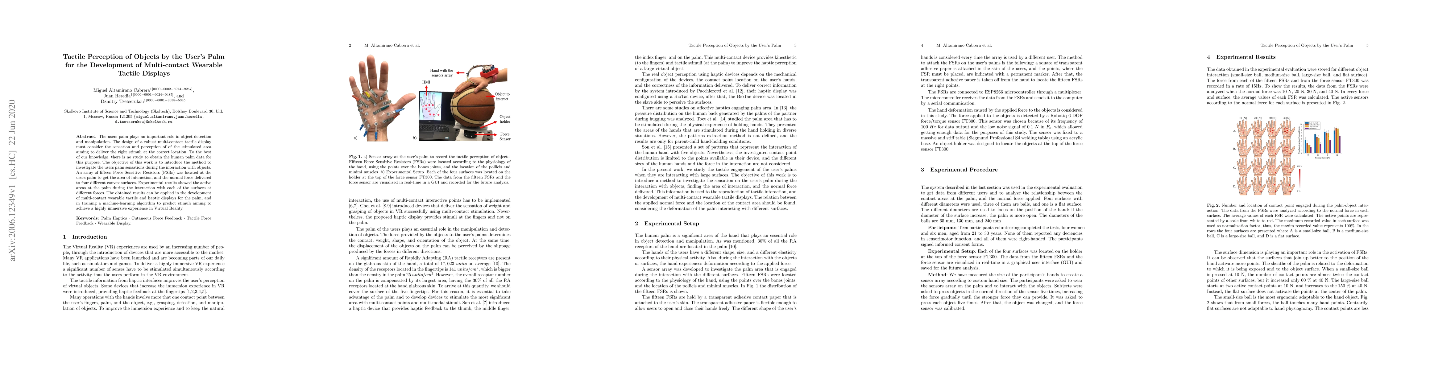 This paper investigates the tactile perception of objects by the user's palm using an array of Force Sensitive Resistors to map interaction areas and forces. The results provide data for developing multi-contact wearable tactile displays and training machine-learning algorithms for immersive VR experiences.