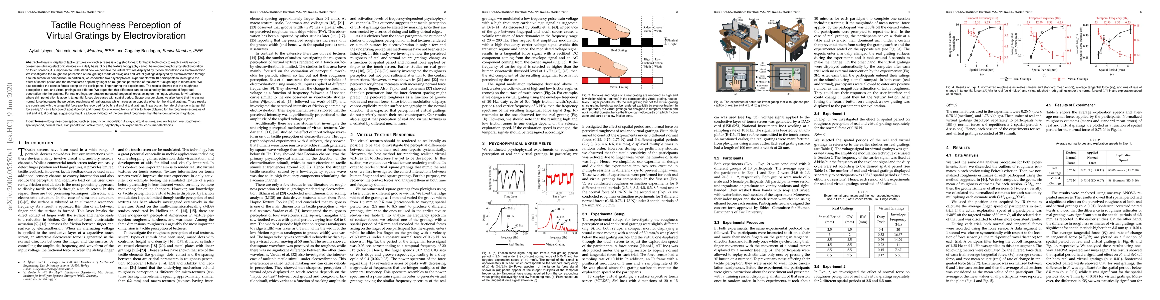 This study investigates how tactile roughness perception differs between real and virtual gratings displayed via electrovibration on touch screens. Experiments with 10 participants revealed that real gratings produce higher perceived roughness with increased fingerpad penetration, while virtual gratings show reduced roughness perception with higher spatial periods. The study concludes that tangential force dynamics, rather than its magnitude, better predict perceived roughness.