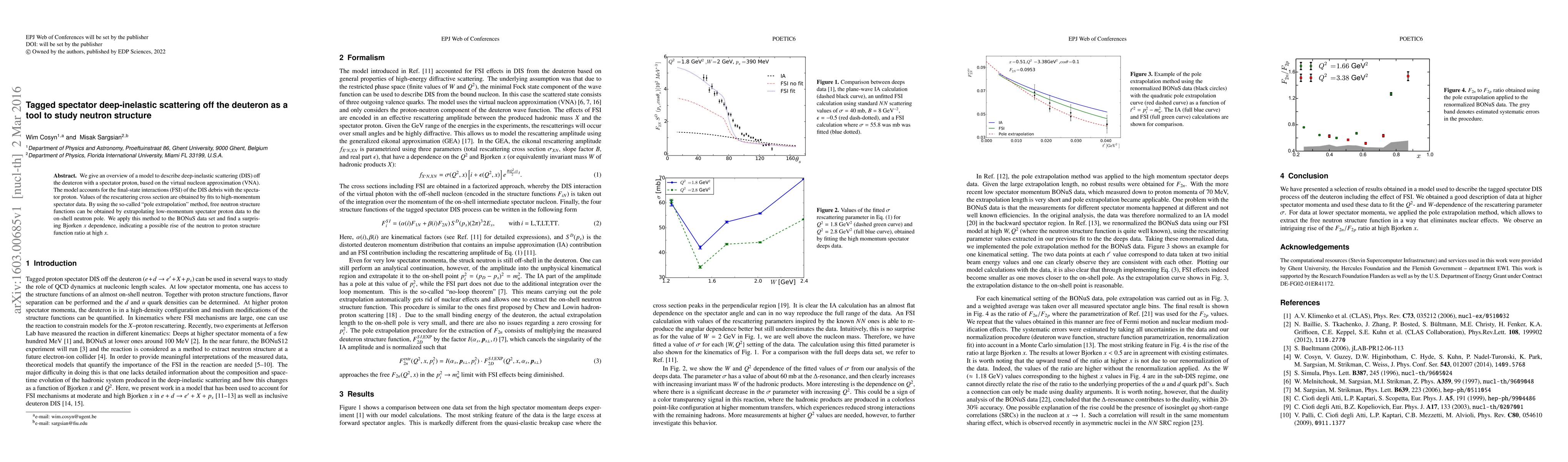 We give an overview of a model to describe deep-inelastic scattering (DIS) off the deuteron with a spectator proton, based on the virtual nucleon approximation (VNA). The model accounts for the final-state interactions (FSI) of the DIS debris with the spectator proton. Values of the rescattering cross section are obtained by fits to high-momentum spectator data. By using the so-called "pole extrapolation method", free neutron structure functions can be obtained by extrapolating low-momentum spectator proton data to the on-shell neutron pole. We apply this method to the BONuS data set and find a surprising Bjorken $x$ dependence, indicating a possible rise of the neutron to proton structure function ratio at high $x$.
