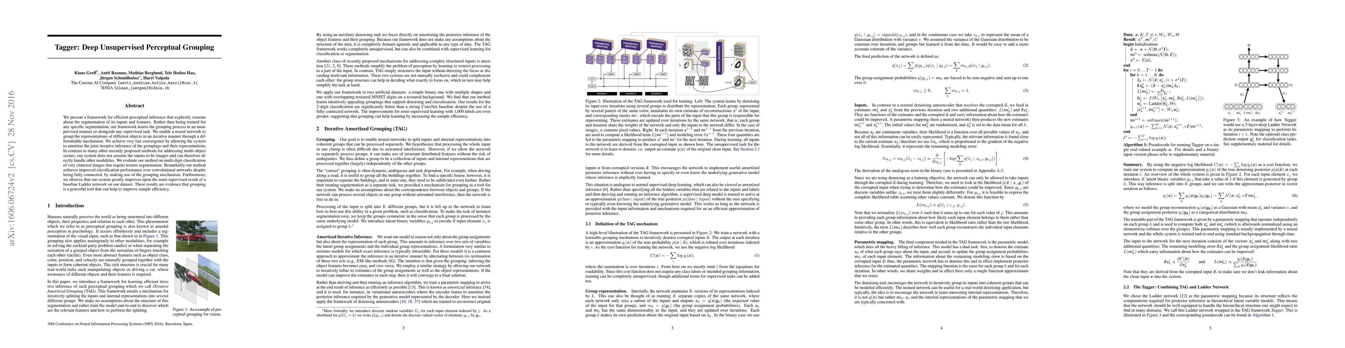 This paper presents a deep learning framework called Tagger that can efficiently group objects in images without explicit training for segmentation, achieving improved performance over convolutional networks on multi-digit classification tasks.