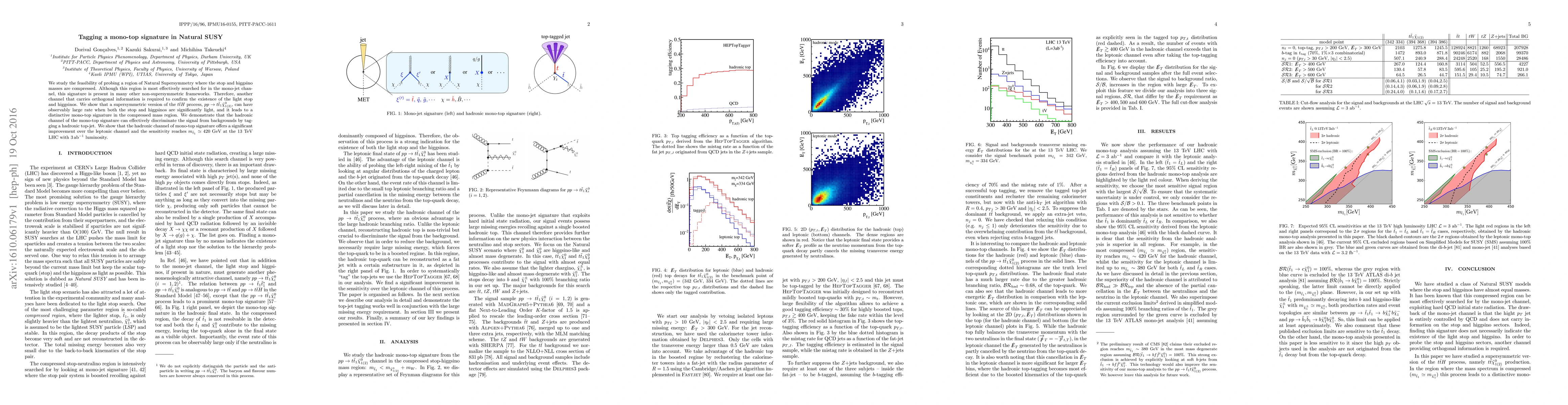 We study the feasibility of probing a region of Natural Supersymmetry where the stop and higgsino masses are compressed. Although this region is most effectively searched for in the mono-jet channel, this signature is present in many other non-supersymmetric frameworks. Therefore, another channel that carries orthogonal information is required to confirm the existence of the light stop and higgsinos. We show that a supersymmetric version of the $t \bar t H$ process, $pp \to t \tilde t_1 \tilde \chi^0_{1(2)}$, can have observably large rate when both the stop and higgsinos are significantly light, and it leads to a distinctive mono-top signature in the compressed mass region. We demonstrate that the hadronic channel of the mono-top signature can effectively discriminate the signal from backgrounds by tagging a hadronic top-jet. We show that the hadronic channel of mono-top signature offers a significant improvement over the leptonic channel and the sensitivity reaches $m_{\tilde t_1} \simeq 420$ GeV at the 13 TeV LHC with 3 ab$^{-1}$ luminosity.