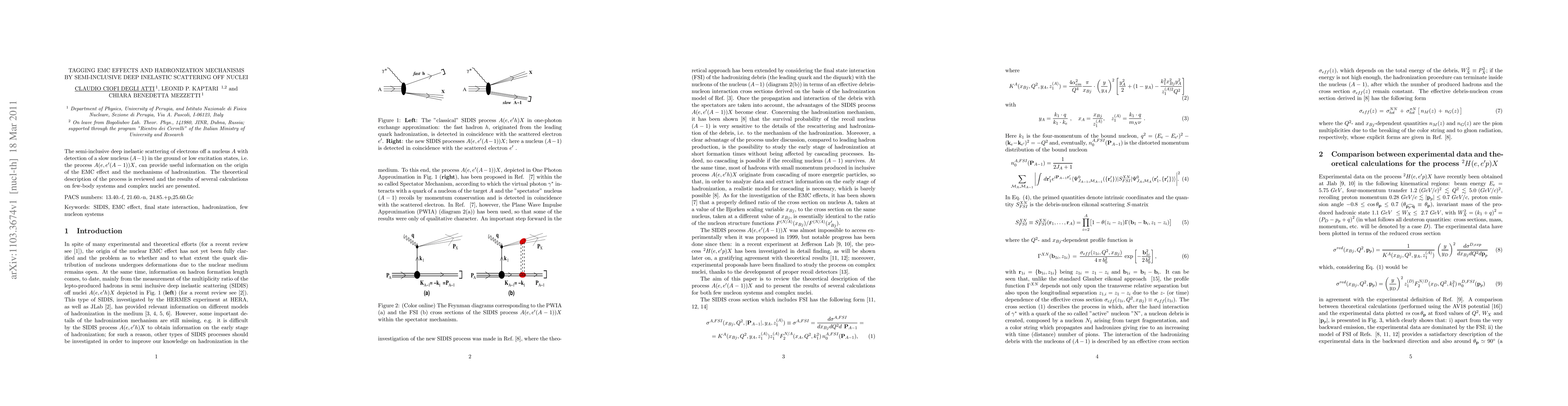 This paper reviews semi-inclusive deep inelastic scattering experiments to investigate the EMC effect and hadronization mechanisms, using electron scattering off nuclei to detect residual nuclei. Theoretical models and calculations on both few-body and complex nuclei are analyzed to extract insights into these phenomena.