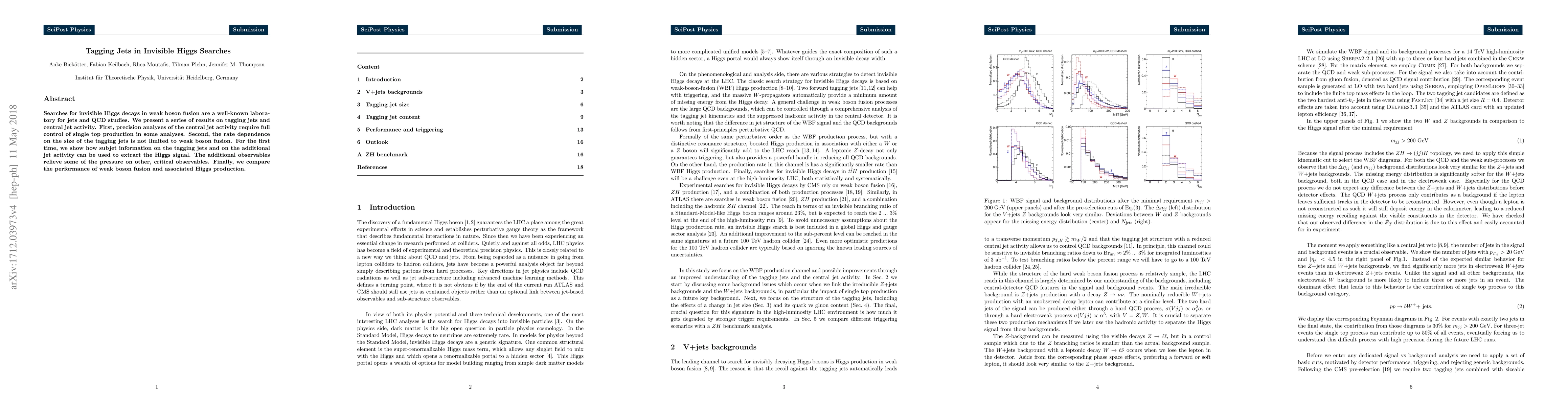 Searches for invisible Higgs decays in weak boson fusion are a well-known laboratory for jets and QCD studies. We present a series of results on tagging jets and central jet activity. First, precision analyses of the central jet activity require full control of single top production in some analyses. Second, the rate dependence on the size of the tagging jets is not limited to weak boson fusion. For the first time, we show how subjet information on the tagging jets and on the additional jet activity can be used to extract the Higgs signal. The additional observables relieve some of the pressure on other, critical observables. Finally, we compare the performance of weak boson fusion and associated Higgs production.