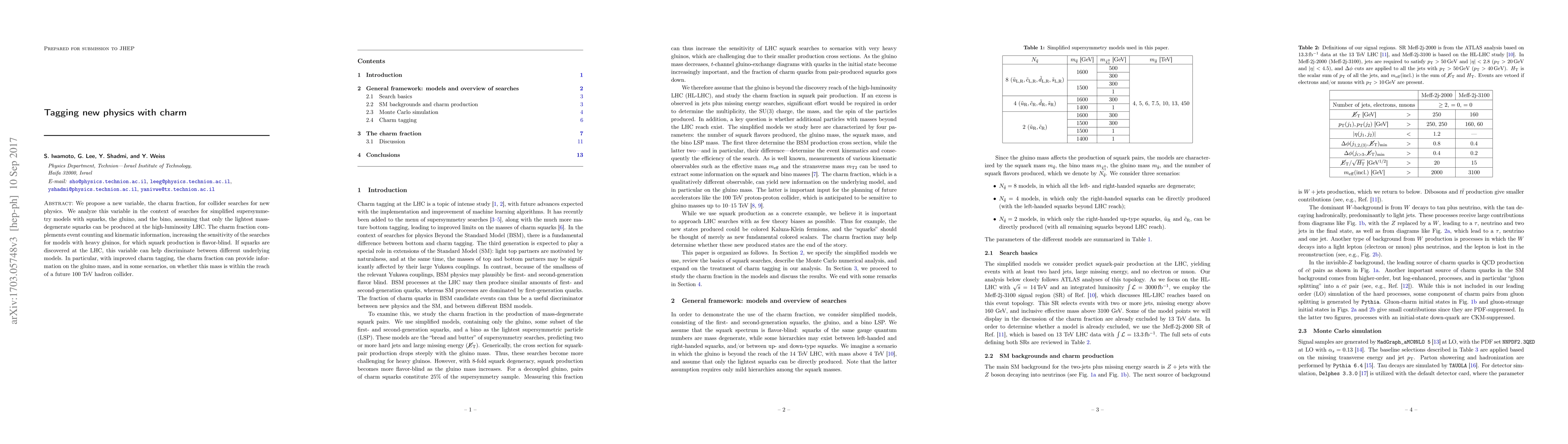 We propose a new variable, the charm fraction, for collider searches for new physics. We analyze this variable in the context of searches for simplified supersymmetry models with squarks, the gluino, and the bino, assuming that only the lightest mass-degenerate squarks can be produced at the high-luminosity LHC. The charm fraction complements event counting and kinematic information, increasing the sensitivity of the searches for models with heavy gluinos, for which squark production is flavor-blind. If squarks are discovered at the LHC, this variable can help discriminate between different underlying models. In particular, with improved charm tagging, the charm fraction can provide information on the gluino mass, and in some scenarios, on whether this mass is within the reach of a future 100 TeV hadron collider.