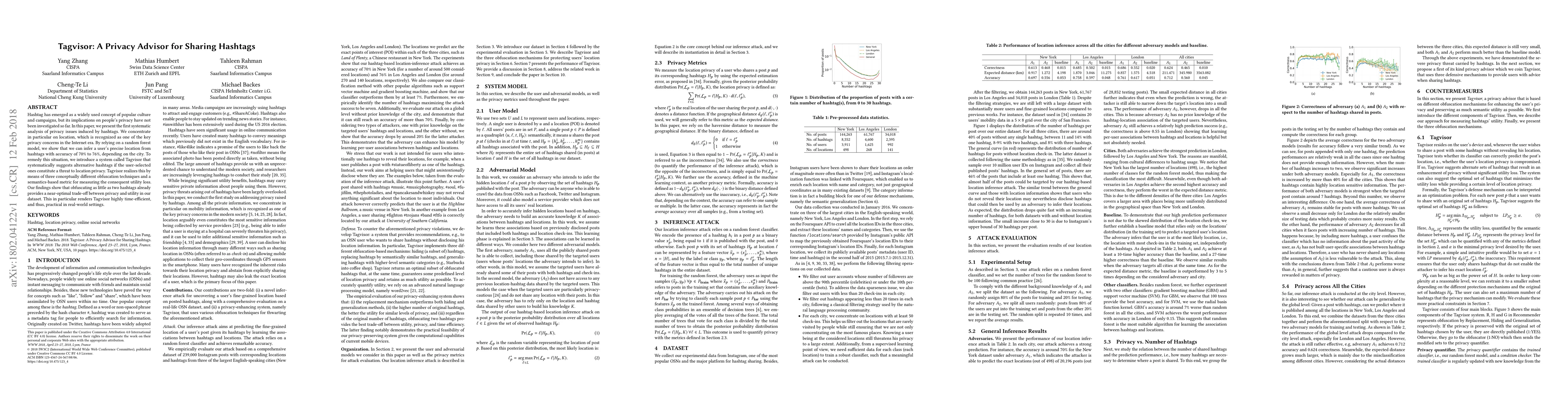 Hashtag has emerged as a widely used concept of popular culture and campaigns, but its implications on people's privacy have not been investigated so far. In this paper, we present the first systematic analysis of privacy issues induced by hashtags. We concentrate in particular on location, which is recognized as one of the key privacy concerns in the Internet era. By relying on a random forest model, we show that we can infer a user's precise location from hashtags with accuracy of 70\% to 76\%, depending on the city. To remedy this situation, we introduce a system called Tagvisor that systematically suggests alternative hashtags if the user-selected ones constitute a threat to location privacy. Tagvisor realizes this by means of three conceptually different obfuscation techniques and a semantics-based metric for measuring the consequent utility loss. Our findings show that obfuscating as little as two hashtags already provides a near-optimal trade-off between privacy and utility in our dataset. This in particular renders Tagvisor highly time-efficient, and thus, practical in real-world settings.