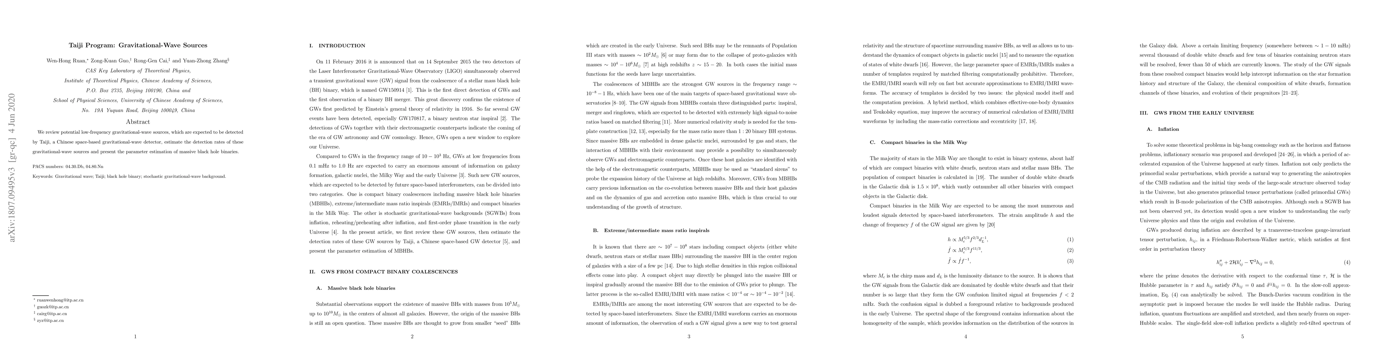 This paper reviews low-frequency gravitational-wave sources detectable by Taiji, a Chinese space-based gravitational-wave detector, and estimates the detection rates and parameter estimation for massive black hole binaries.