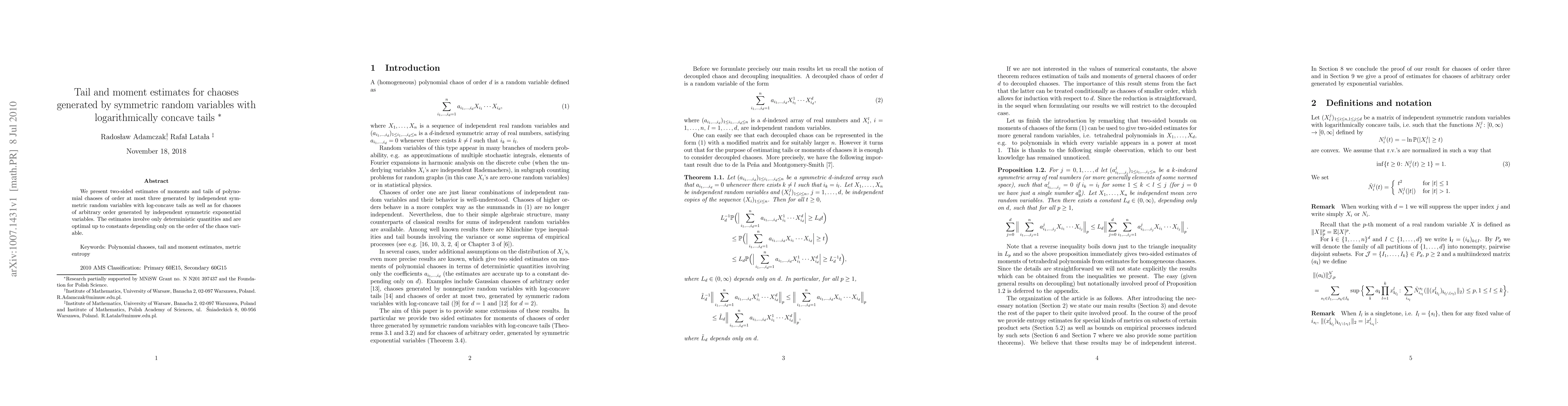 This paper provides optimal two-sided estimates for moments and tails of polynomial chaoses up to order three generated by symmetric random variables with log-concave tails, and for arbitrary order chaoses generated by symmetric exponential variables, using only deterministic quantities.