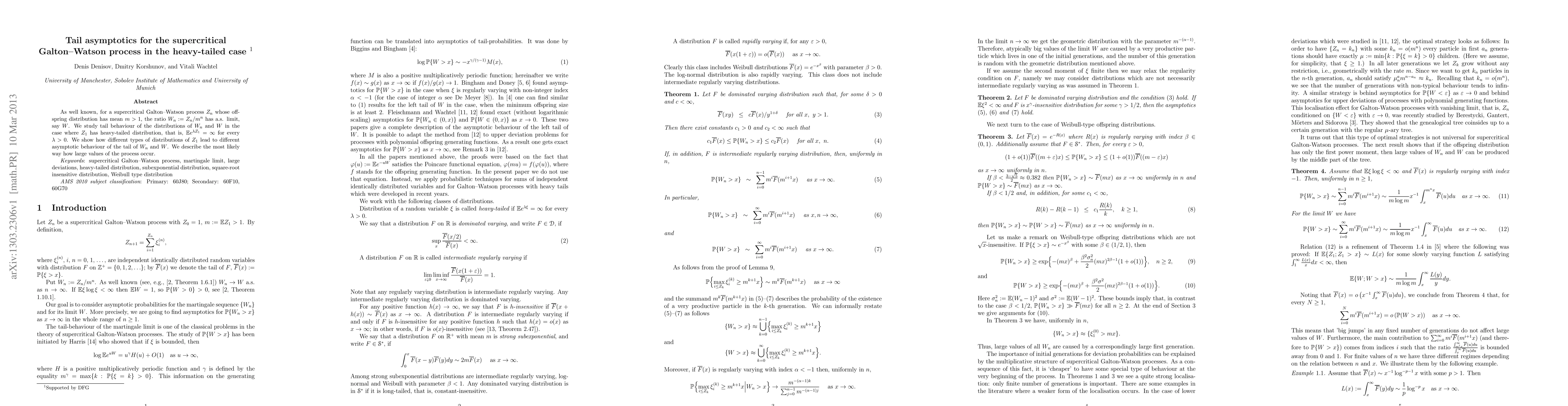 This paper investigates the tail asymptotics of a supercritical Galton-Watson process with heavy-tailed offspring distribution, demonstrating how different heavy-tail types affect the asymptotic behavior of the normalized process and describing the most probable scenarios for large values.
