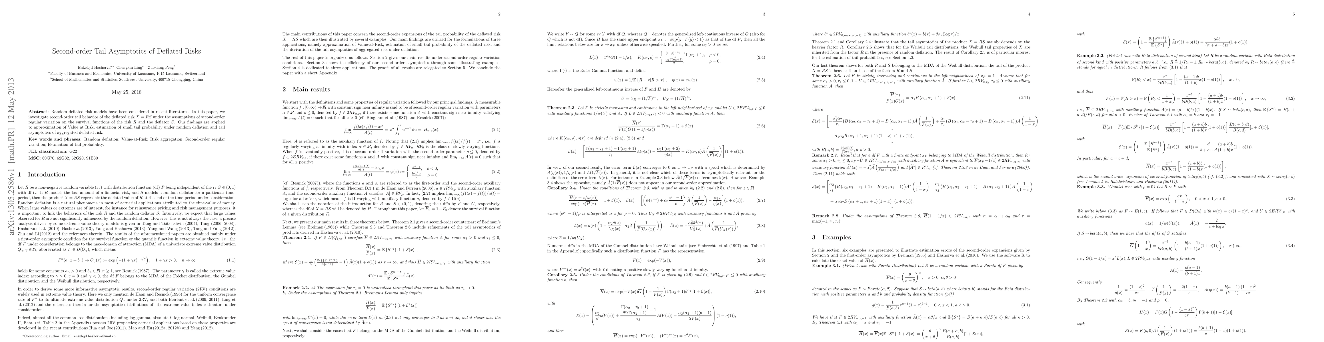 This paper examines the second-order tail behavior of deflated risk models under assumptions of second-order regular variation, providing insights into Value at Risk approximation, small tail probability estimation under random deflation, and aggregated deflated risk tail asymptotics.