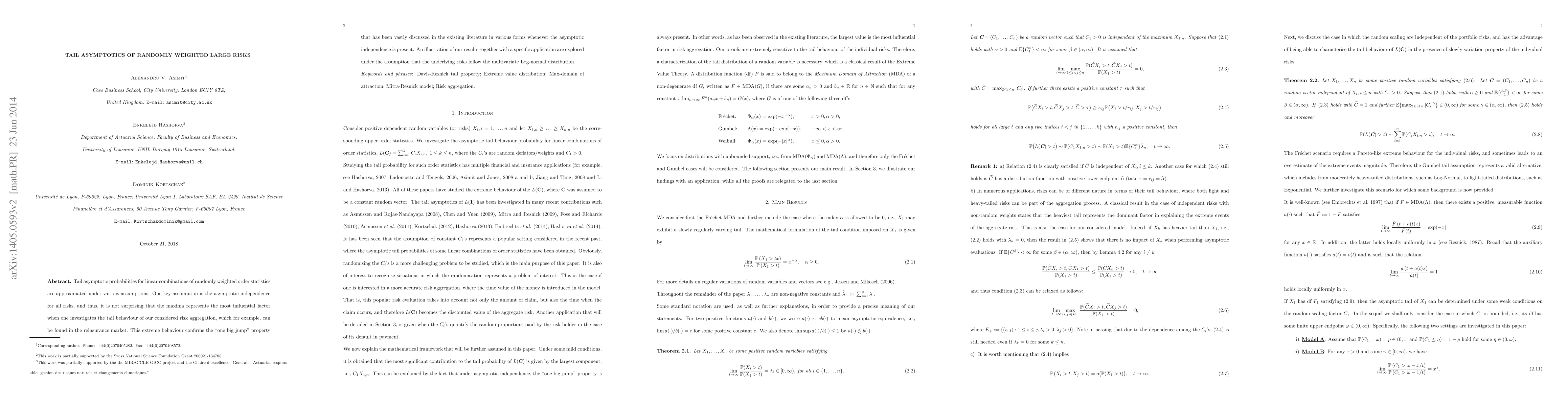 In this paper we are concerned with a sample of asymptotically independent risks. Tail asymptotic probabilities for linear combinations of randomly weighted order statistics are approximated under various assumptions, where the individual tail behaviour has a crucial role. An application is provided for Log-Normal risks.