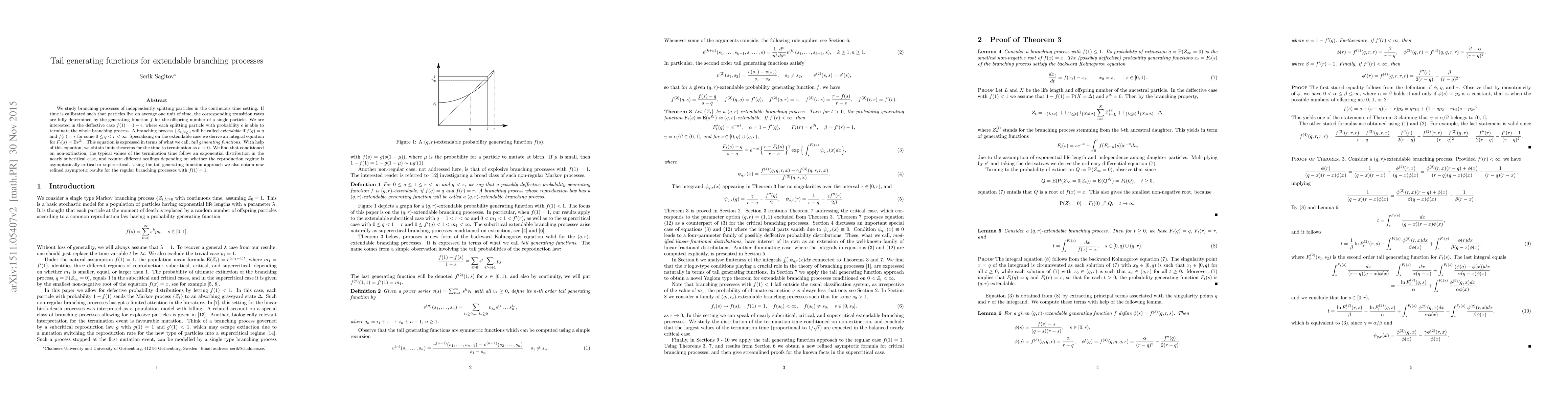 determined by the generating function $f$ for the offspring number of a single