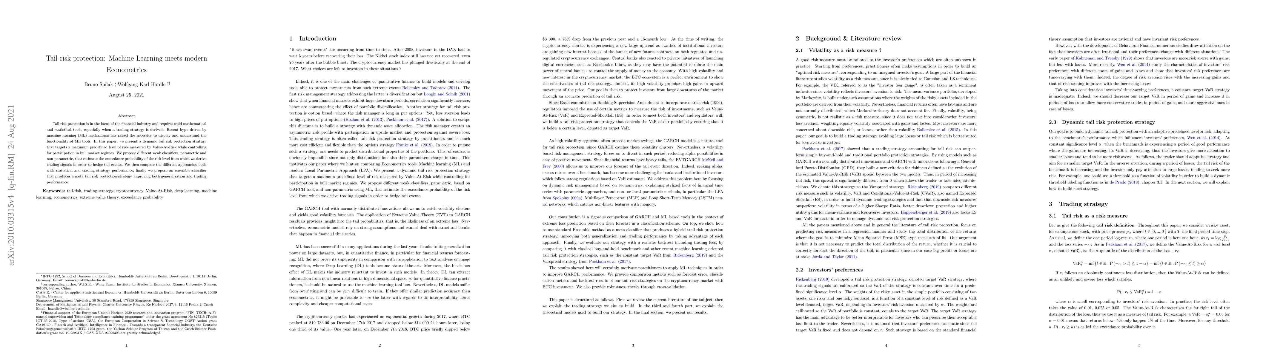 This paper develops a dynamic tail risk protection strategy using machine learning tools to manage Value-At-Risk while participating in bull markets. It compares various classifiers and proposes an ensemble classifier to enhance generalization and trading performance.