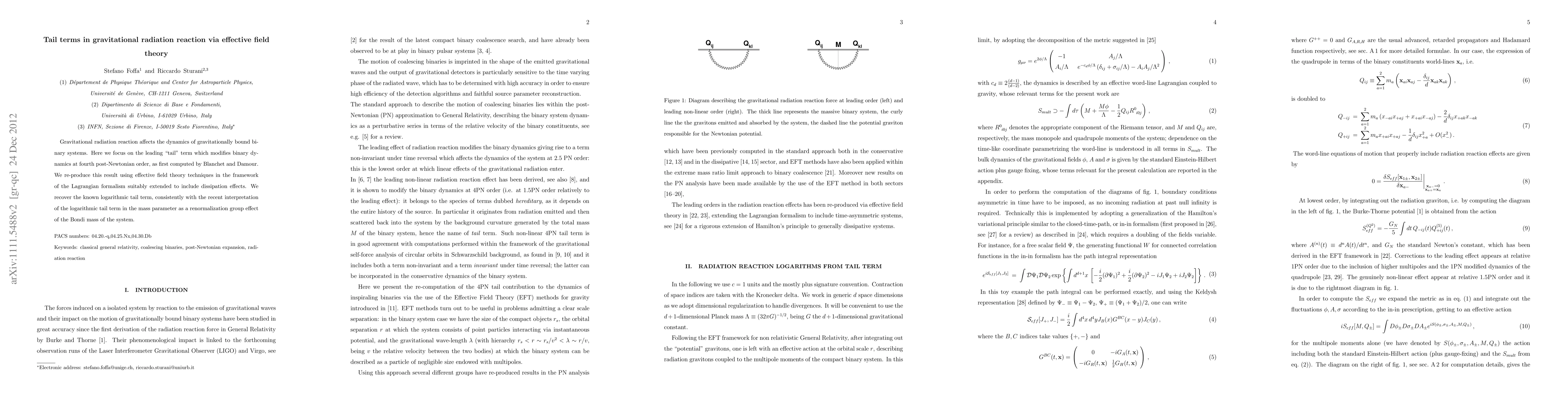Gravitational radiation reaction affects the dynamics of gravitationally bound binary systems. Here we focus on the leading "tail" term which modifies binary dynamics at fourth post-Newtonian order, as first computed by Blanchet and Damour. We re-produce this result using effective field theory techniques in the framework of the Lagrangian formalism suitably extended to include dissipation effects. We recover the known logarithmic tail term, consistently with the recent interpretation of the logarithmic tail term in the mass parameter as a renormalization group effect of the Bondi mass of the system.