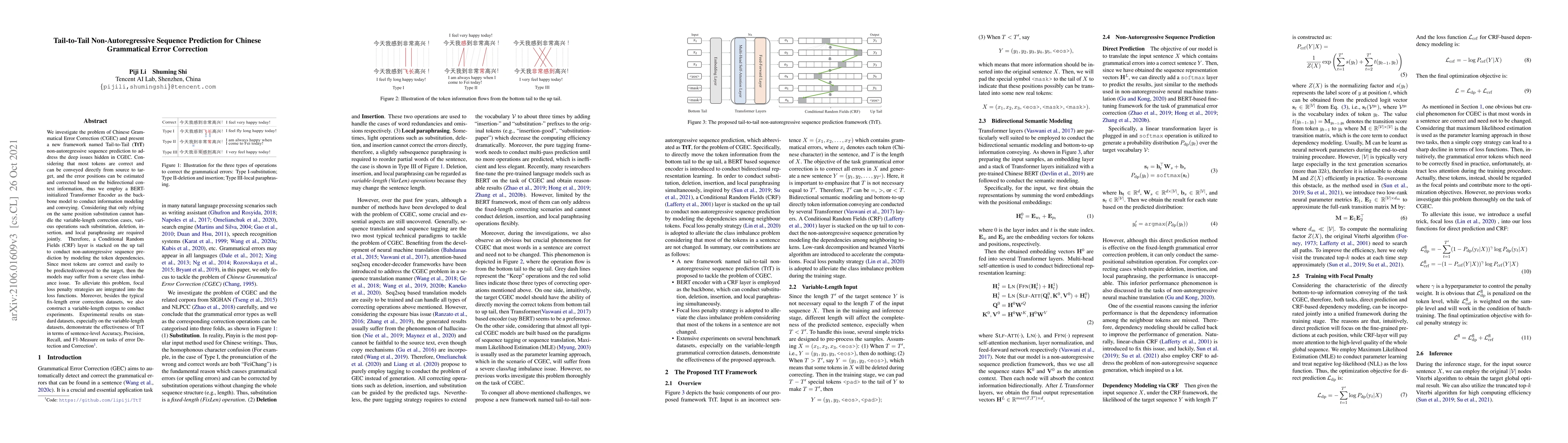 This paper introduces a Tail-to-Tail (TtT) non-autoregressive sequence prediction framework for Chinese Grammatical Error Correction (CGEC), utilizing a BERT-initialized Transformer Encoder and a CRF layer for handling variable-length corrections. The approach addresses class imbalance with focal loss and demonstrates improved performance on both fix-length and variable-length datasets.