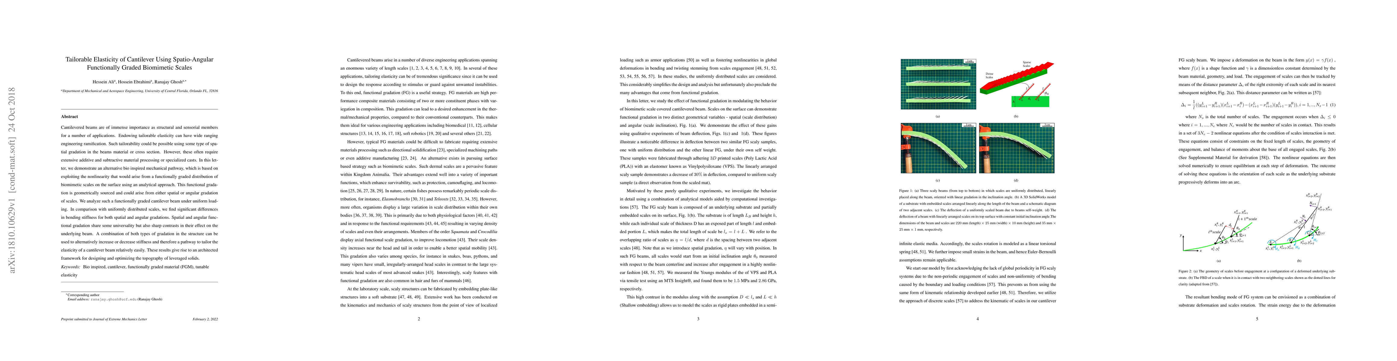 This paper explores a biomimetic approach to tailor the elasticity of cantilever beams through spatially or angularly graded distributions of biomimetic scales, demonstrating significant differences in bending stiffness and offering a pathway for easy customization of beam stiffness without extensive material processing.