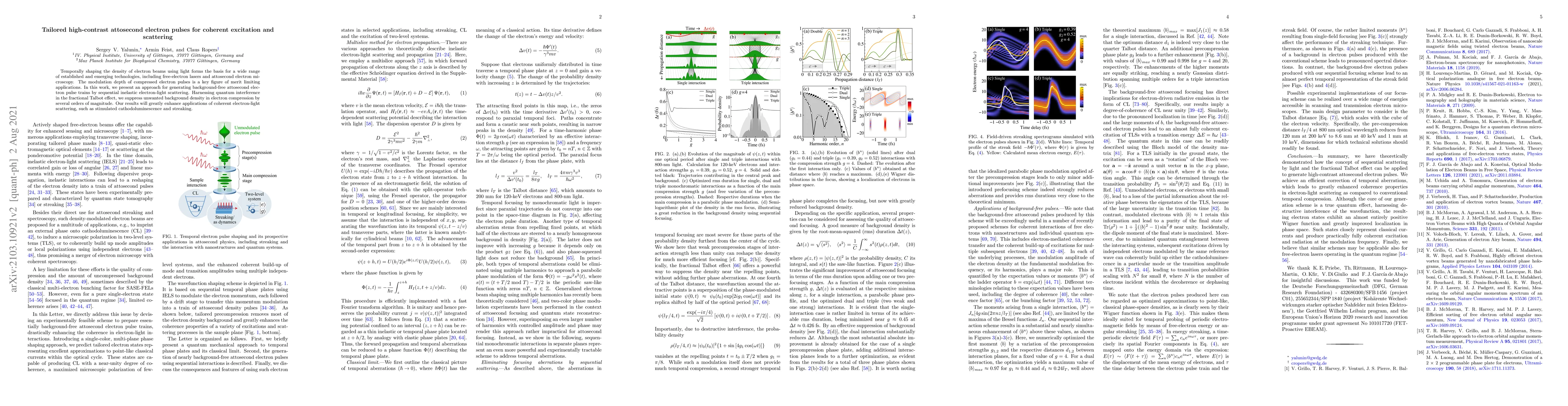 Temporally shaping the density of electron beams using light forms the basis for a wide range of established and emerging technologies, including free-electron lasers and attosecond electron microscopy. The modulation depth of compressed electron pulses is a key figure of merit limiting applications. In this work, we present an approach for generating background-free attosecond electron pulse trains by sequential inelastic electron-light scattering. Harnessing quantum interference in the fractional Talbot effect, we suppress unwanted background density in electron compression by several orders of magnitude. Our results will greatly enhance applications of coherent electron-light scattering, such as stimulated cathodoluminescence and streaking.