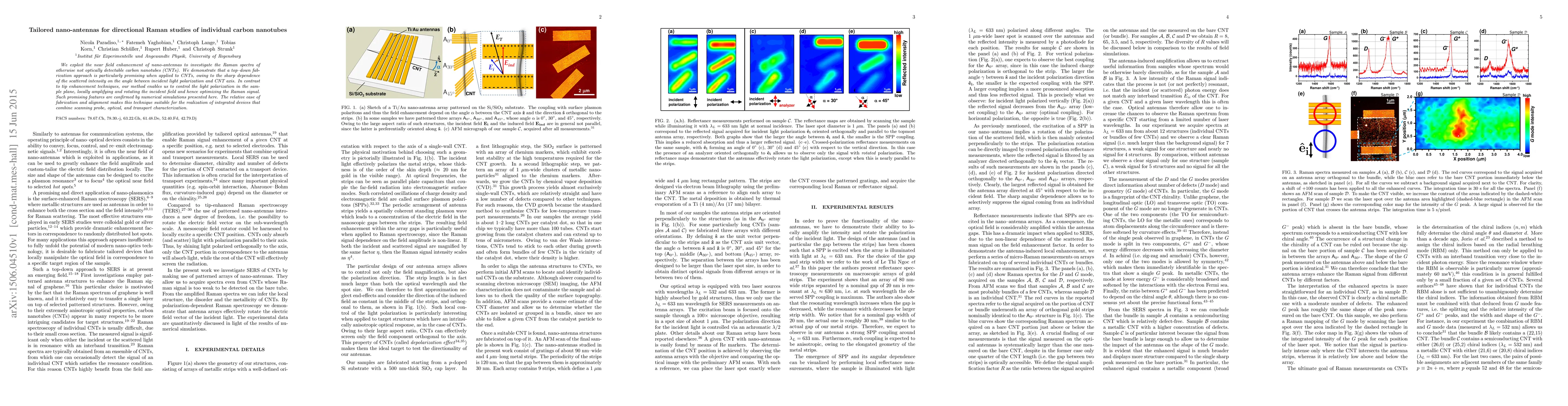 The paper presents a novel method using tailored nano-antennas to study Raman spectra of individual carbon nanotubes (CNTs) that are typically not optically detectable. This top-down fabrication approach allows control of light polarization in the sample plane, enhancing and rotating the incident field for optimized Raman signals. The technique is confirmed through simulations and offers advantages in ease of fabrication and alignment, paving the way for integrated devices combining various characterization methods.