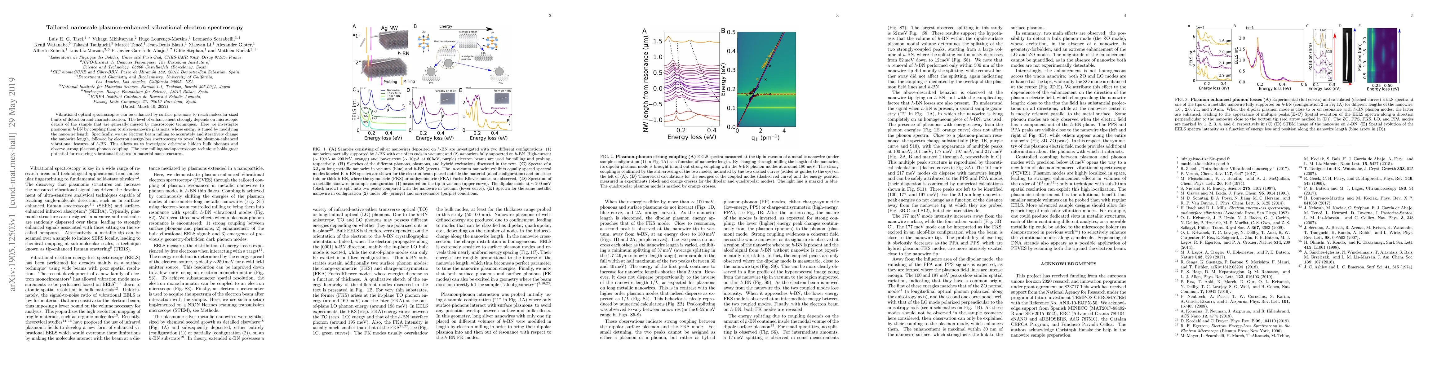 This paper explores the enhancement of vibrational optical spectroscopies using tailored nanoscale plasmons, specifically coupling phonons in h-BN to silver-nanowire plasmons. The study reveals strong plasmon-phonon coupling and hidden bulk phonons through electron beam milling and electron energy-loss spectroscopy, offering a new technique for characterizing material nanostructures.