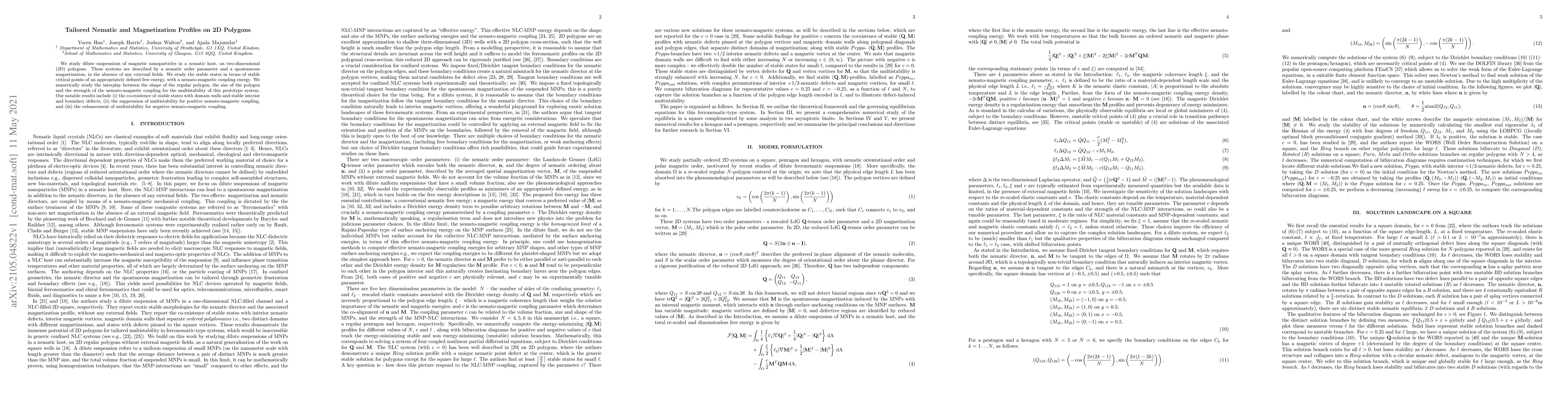 Researchers study how magnetic particles in a nematic host on 2D polygons behave, finding multistability under certain conditions and how coupling between nematism and magnetization affects this behavior.