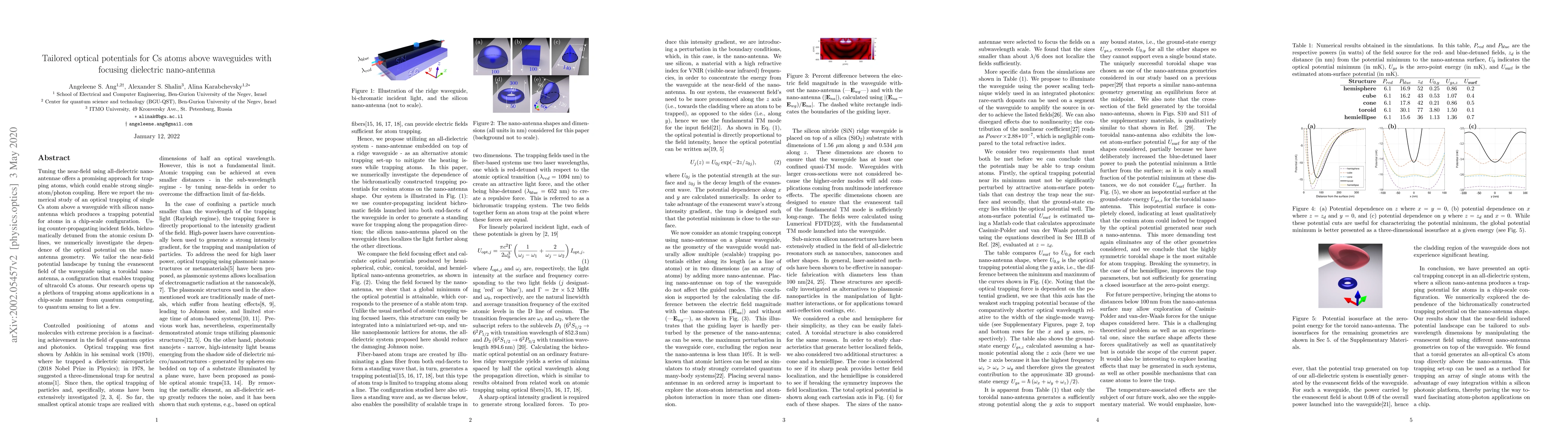 This paper simulates an optical trapping concept using silicon nano-antennae to create a potential for Cs atoms above waveguides. By employing counter-propagating, bichromatically detuned fields, the study investigates how the nano-antenna geometry influences the optical potential, achieving tailored near-field potentials for trapping ultracold Cs atoms via evanescent field tuning.