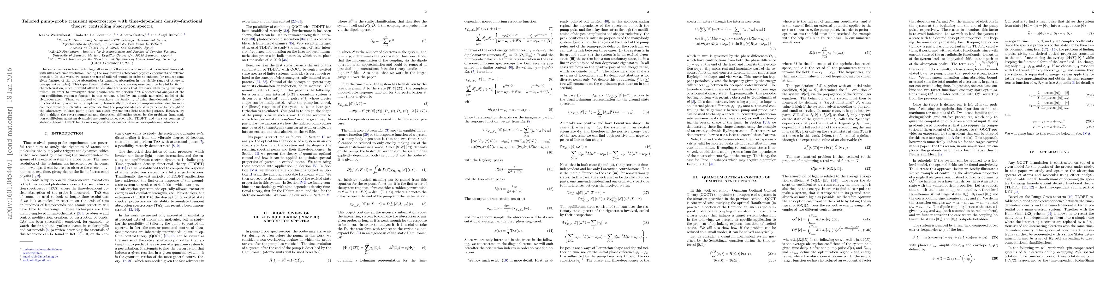 This paper explores the use of tailored pump pulses to manipulate probe absorption spectra using time-dependent density-functional theory (TDDFT). It demonstrates the potential of this approach to reveal otherwise "dark" transitions in complex atoms or molecules, though it also highlights significant theoretical and computational challenges.