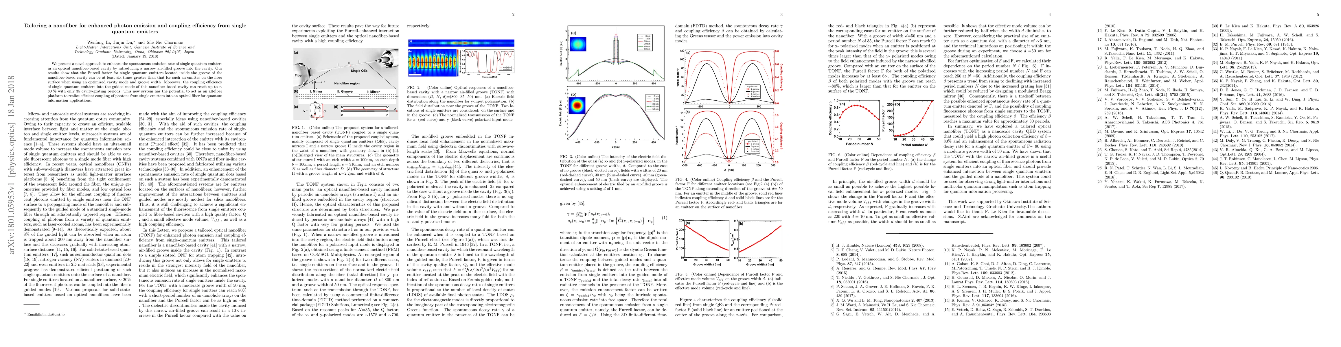 This paper introduces a novel nanofiber design with a narrow air-filled groove to significantly enhance the spontaneous emission rate and coupling efficiency of single quantum emitters into the fiber's guided mode, achieving a Purcell factor six times greater than on the fiber surface and a coupling efficiency of up to 80%.