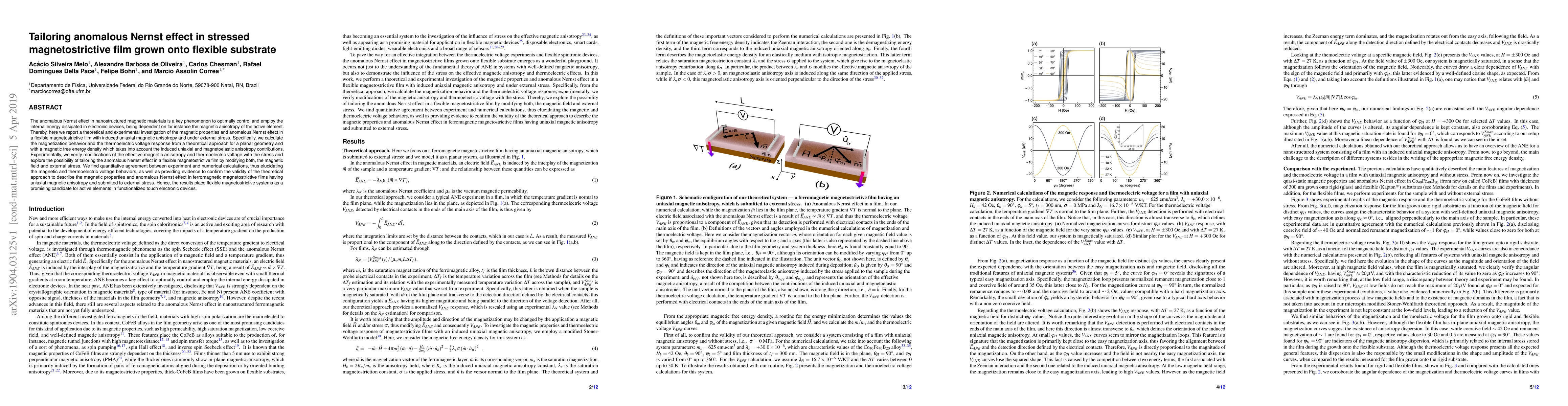 This paper investigates both theoretically and experimentally the anomalous Nernst effect in flexible magnetostrictive films under external stress, demonstrating the ability to tailor this effect by adjusting magnetic field and stress, and confirming the validity of the theoretical model used. The findings suggest these materials could be useful for active components in advanced electronic devices.