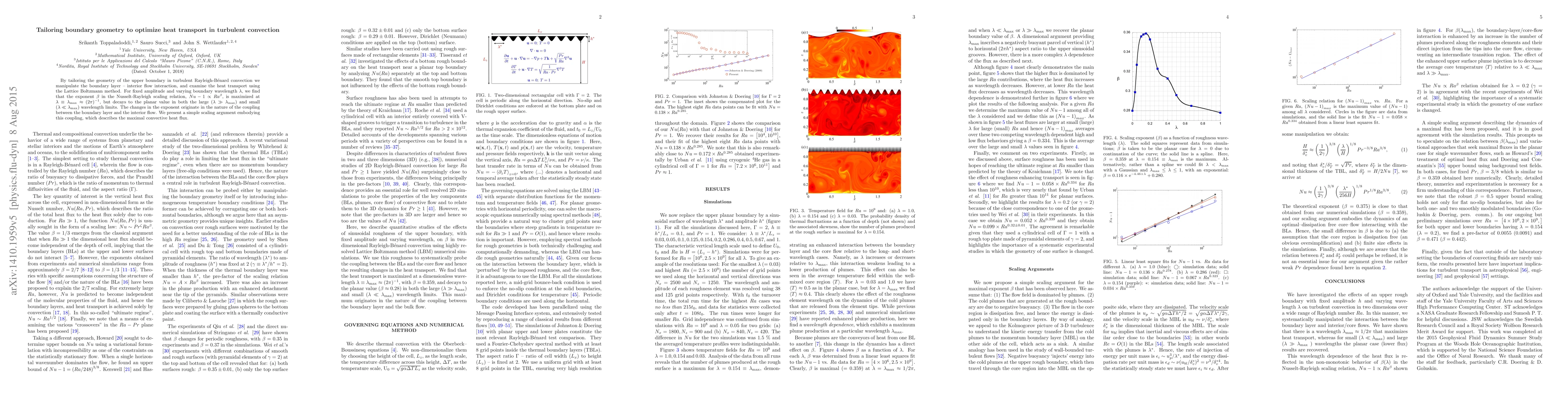 By tailoring the geometry of the upper boundary in turbulent Rayleigh-B\'enard convection we manipulate the boundary layer -- interior flow interaction, and examine the heat transport using the Lattice Boltzmann method. For fixed amplitude and varying boundary wavelength $\lambda$, we find that the exponent $\beta$ in the Nusselt-Rayleigh scaling relation, $Nu-1 \propto Ra^\beta$, is maximized at $\lambda \equiv \lambda_{\text{max}} \approx (2 \pi)^{-1}$, but decays to the planar value in both the large ($\lambda \gg \lambda_{\text{max}}$) and small ($\lambda \ll \lambda_{\text{max}}$) wavelength limits. The changes in the exponent originate in the nature of the coupling between the boundary layer and the interior flow. We present a simple scaling argument embodying this coupling, which describes the maximal convective heat flux.