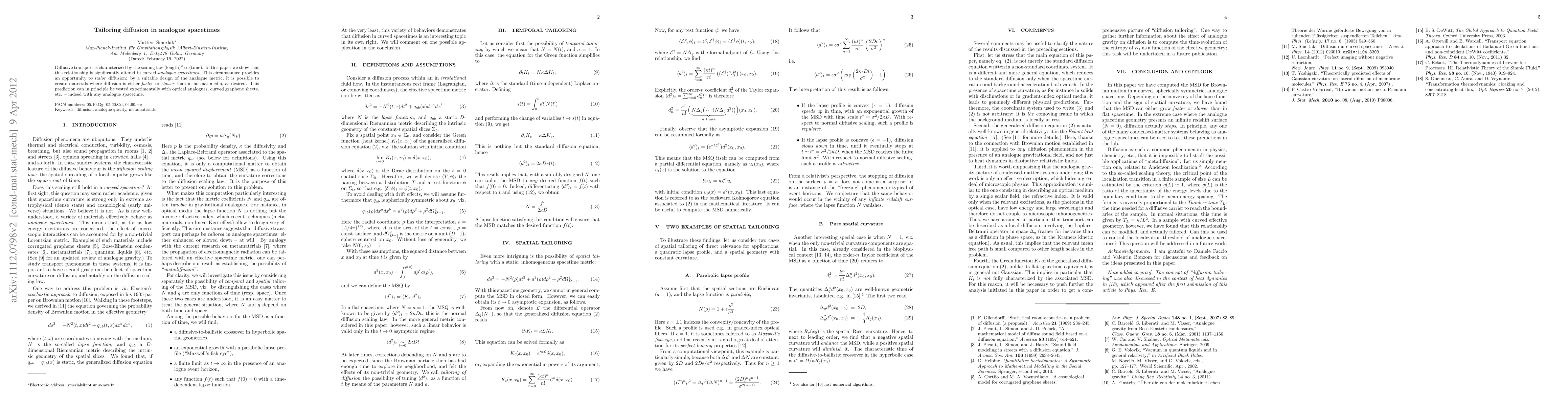 Diffusive transport is characterized by the scaling law $(length)^{2}\propto(time)$. In this letter we show that this relationship is significantly altered in curved analogue spacetimes. This circumstance provides an opportunity to tailor diffusion: by a suitable design of the analogue metric, it is possible to create materials where diffusion is either faster or slower than in normal media, as desired. This prediction can in principle be tested experimentally with optical analogues, curved graphene sheets, etc. - indeed with any analogue spacetime.
