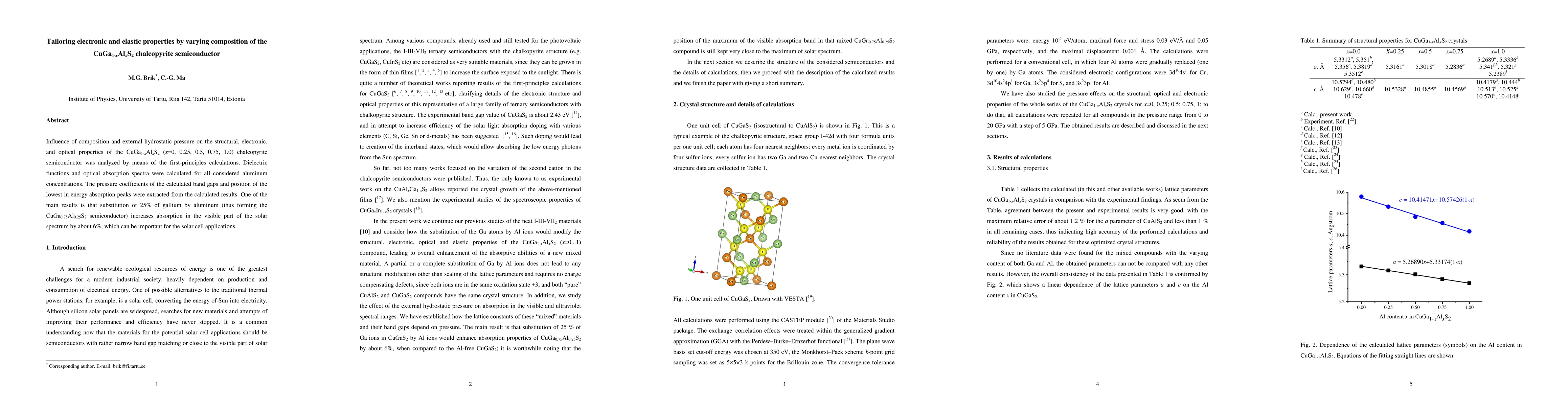 This paper investigates the impact of aluminum substitution for gallium in CuGa1-xAlxS2 chalcopyrite semiconductors on their electronic and optical properties using first-principles calculations. The study finds that substituting 25% of gallium with aluminum enhances visible light absorption by 6%, potentially improving solar cell efficiency.