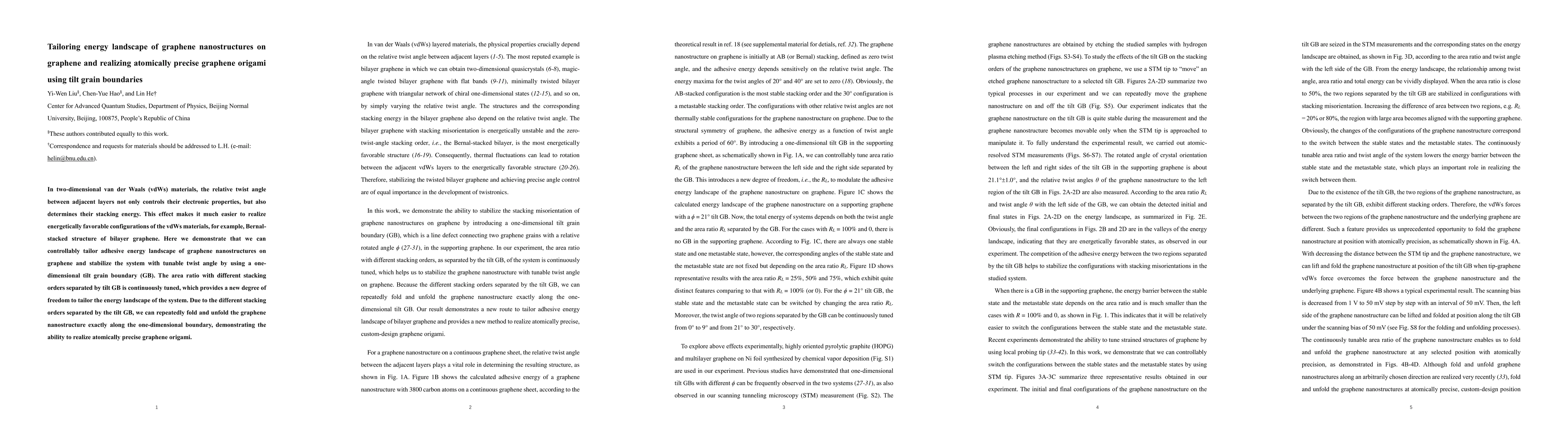 This paper demonstrates a method to control the energy landscape of graphene nanostructures using tilt grain boundaries, enabling the realization of atomically precise graphene origami through the manipulation of twist angles between graphene layers. The ability to tune the area ratio of different stacking orders via tilt grain boundaries provides a new approach for precise folding and unfolding of graphene structures.