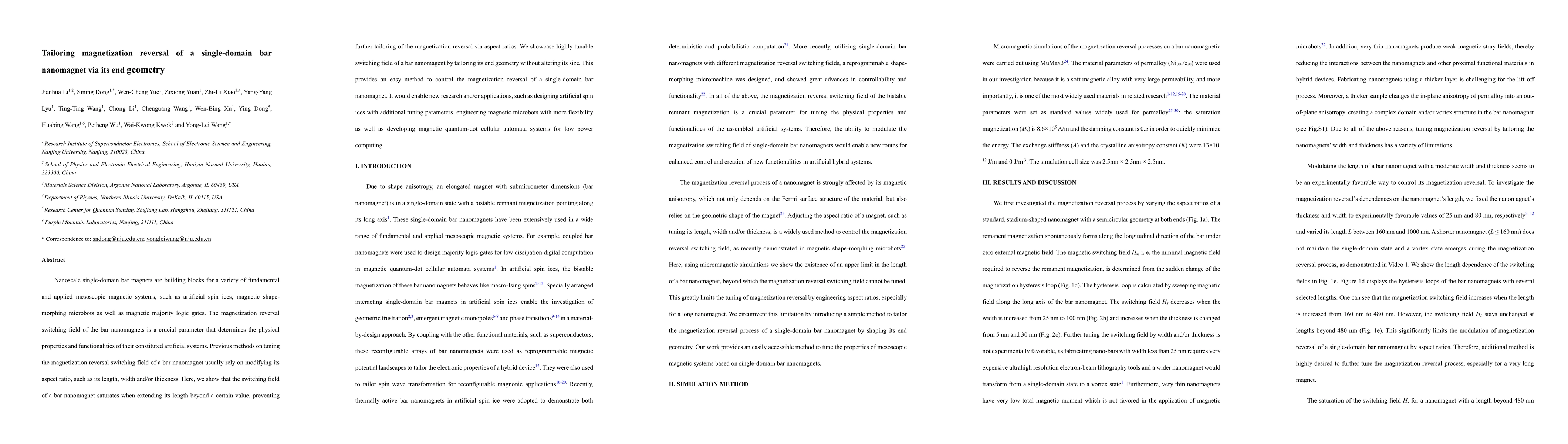 This paper demonstrates that the magnetization reversal switching field of single-domain bar nanomagnets can be highly tuned by altering their end geometry rather than their aspect ratio, offering a new method for controlling their magnetic properties. This approach enables potential advancements in artificial spin ices, magnetic microbots, and low power computing systems.