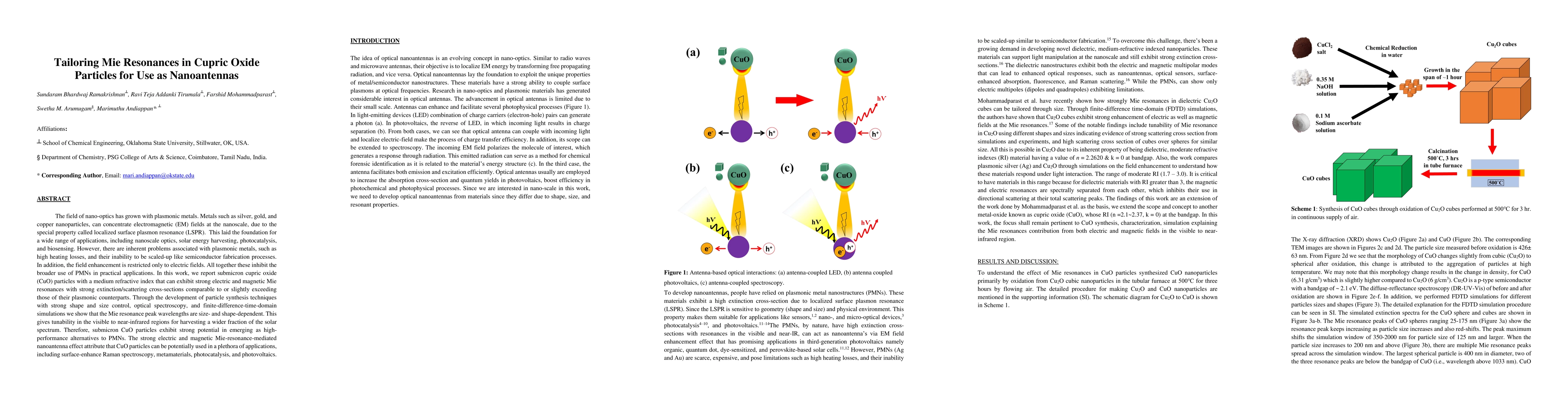 Submicron cupric oxide particles exhibit strong electric and magnetic Mie resonances with tunability in the visible to near-infrared regions, offering high-performance alternatives to plasmonic metals for various applications.