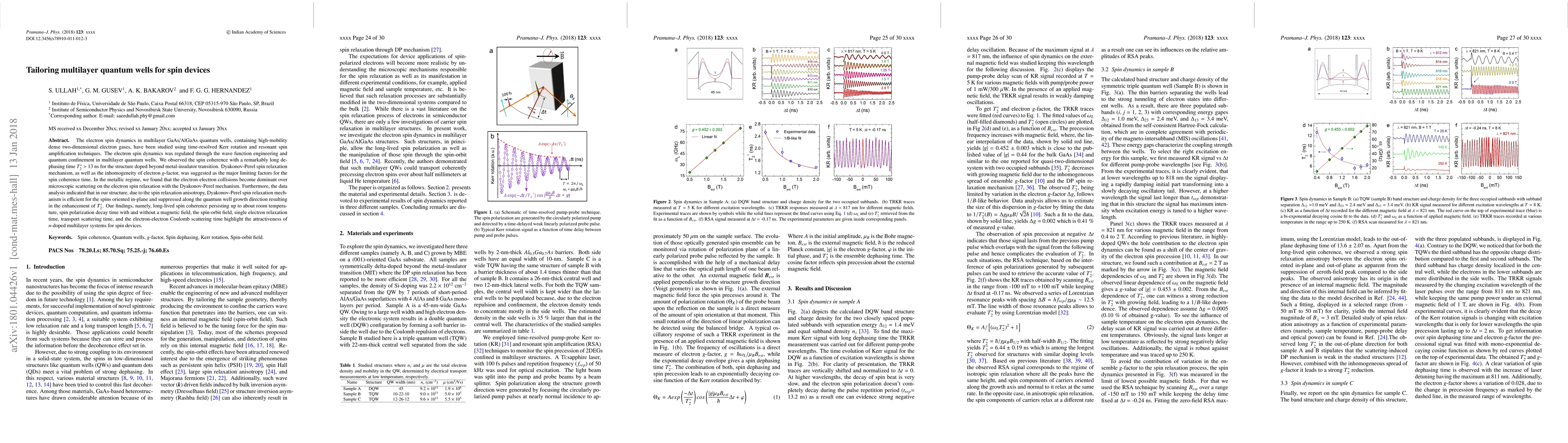 This paper explores electron spin dynamics in multilayer GaAs/AlGaAs quantum wells, achieving long spin coherence times of T2* > 13 ns through wave function engineering. The study identifies Dyakonov-Perel spin relaxation and electron g-factor inhomogeneity as key factors limiting spin coherence, highlighting the potential of n-doped multilayer systems for spin devices.