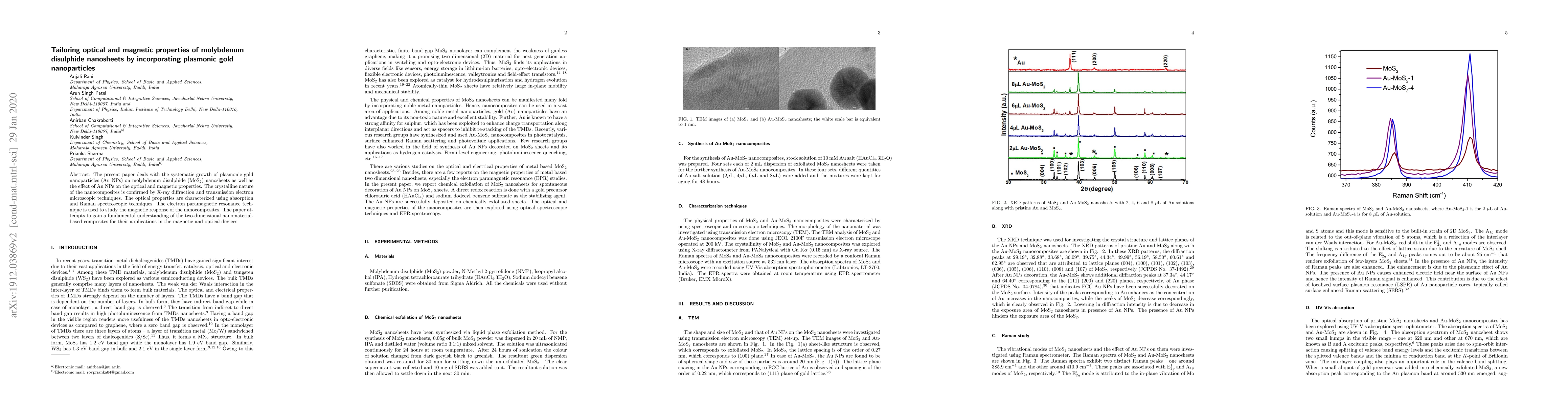 This research investigates the integration of plasmonic gold nanoparticles with molybdenum disulphide nanosheets, examining the resultant changes in optical and magnetic properties through spectroscopic and microscopic techniques. The study aims to provide insights into the potential of such nanocomposites for advanced optical and magnetic applications.