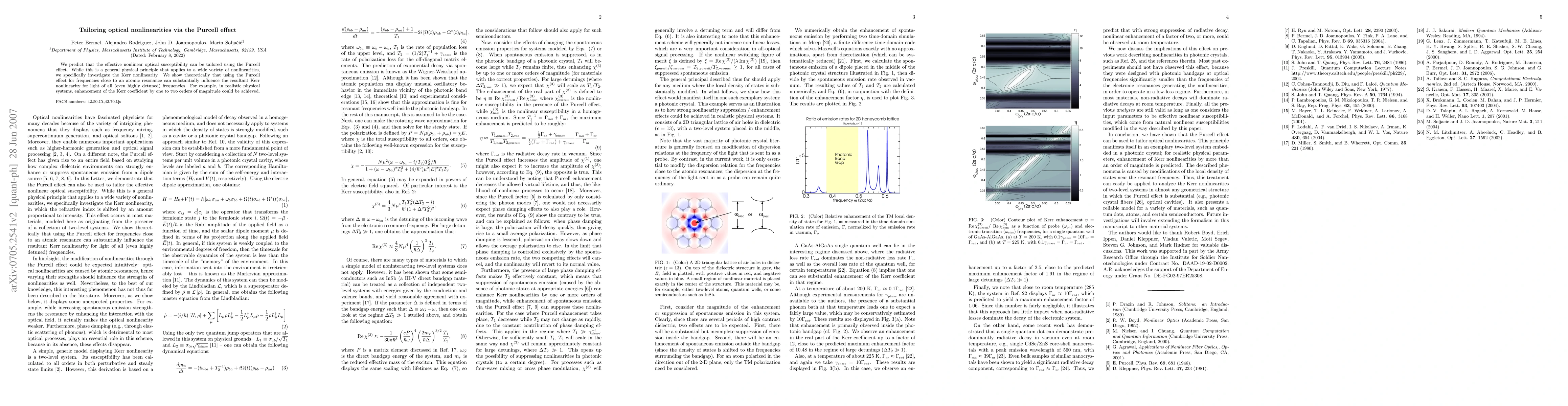 Researchers show that the Purcell effect can significantly influence the Kerr nonlinearity of light in materials, potentially enhancing it by 1-2 orders of magnitude.