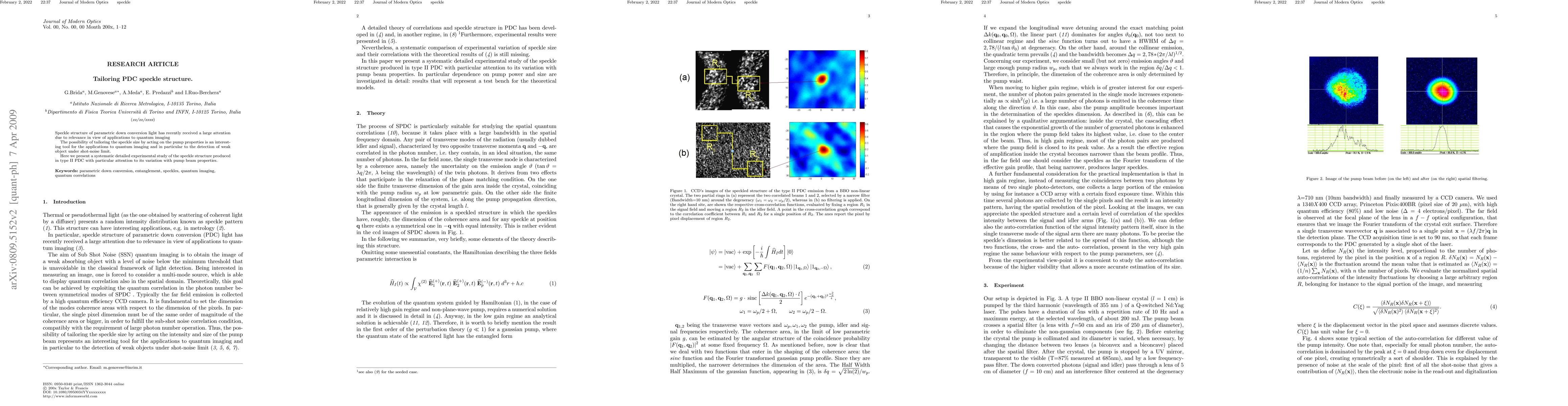 Speckle structure of parametric down conversion light has recently received a large attention due to relevance in view of applications to quantum imaging The possibility of tailoring the speckle size by acting on the pump properties is an interesting tool for the applications to quantum imaging and in particular to the detection of weak object under shot-noise limit. Here we present a systematic detailed experimental study of the speckle structure produced in type II PDC with particular attention to its variation with pump beam properties.