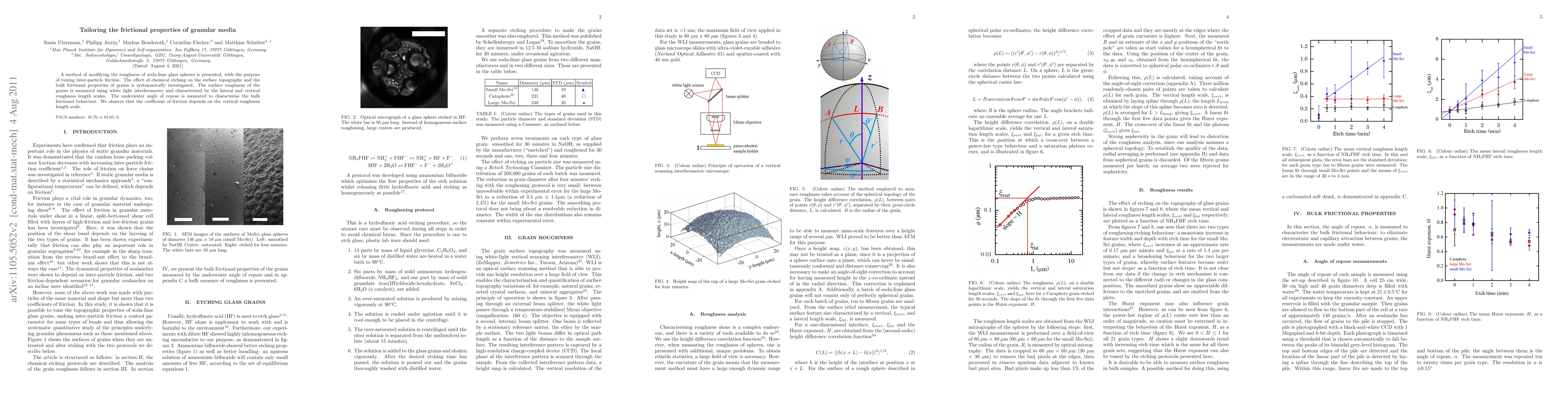 This paper investigates a method to modify the roughness of soda-lime glass spheres via chemical etching to tune inter-particle friction. The study finds that the coefficient of friction depends on the vertical roughness length scale, and bulk frictional behavior is characterized using the underwater angle of repose and a carbonated soft drink.